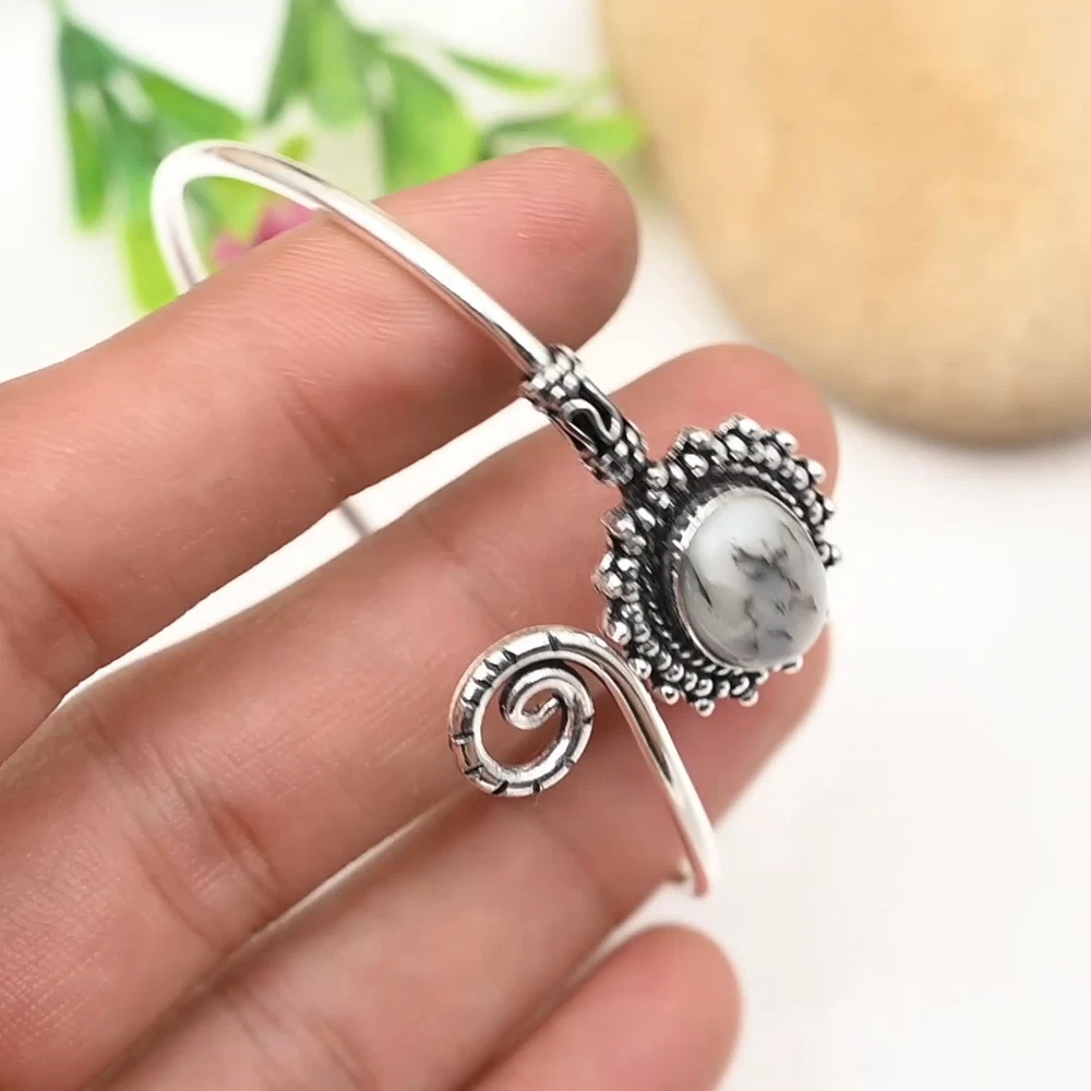 Base Metal:Sterling SilverCollection:HandmadeMain Stone Length:N/ABrand:HandmadeMain Stone Depth:N/AClosure:AdjustableMain Stone Width:N/AMain Stone Color:WhiteItem Length:AdjustableDiamond Clarity Grade:N/ASecondary Stone:N/AChain Type:N/AFeatures:AdjustableOccasion:Anniversary, Birthday, Christmas, Engagement, Mother's Day, Valentine's Day, WeddingMaterial:GemstoneColor:SilverDiamond Color Grade:N/ATheme:Beauty, Bohemian, Ethnic, Halloween, LoveNumber of Diamonds:N/AMain Stone:Dendritic OpalMetal:Sterling SilverMetal Purity:925Certification:N/AStyle:CuffCountry/Region of Manufacture:IndiaMain Stone Shape:OvalMain Stone Creation:NaturalCharm Type:Same As PictureCountry of Origin:IndiaColored Diamond Intensity:N/ATotal Carat Weight:10 carat and aboveSetting Style:BezelCut Grade:ExcellentNumber of Gemstones:1Type:BangleMain Stone Treatment:Not EnhancedShape:Same As Picture
