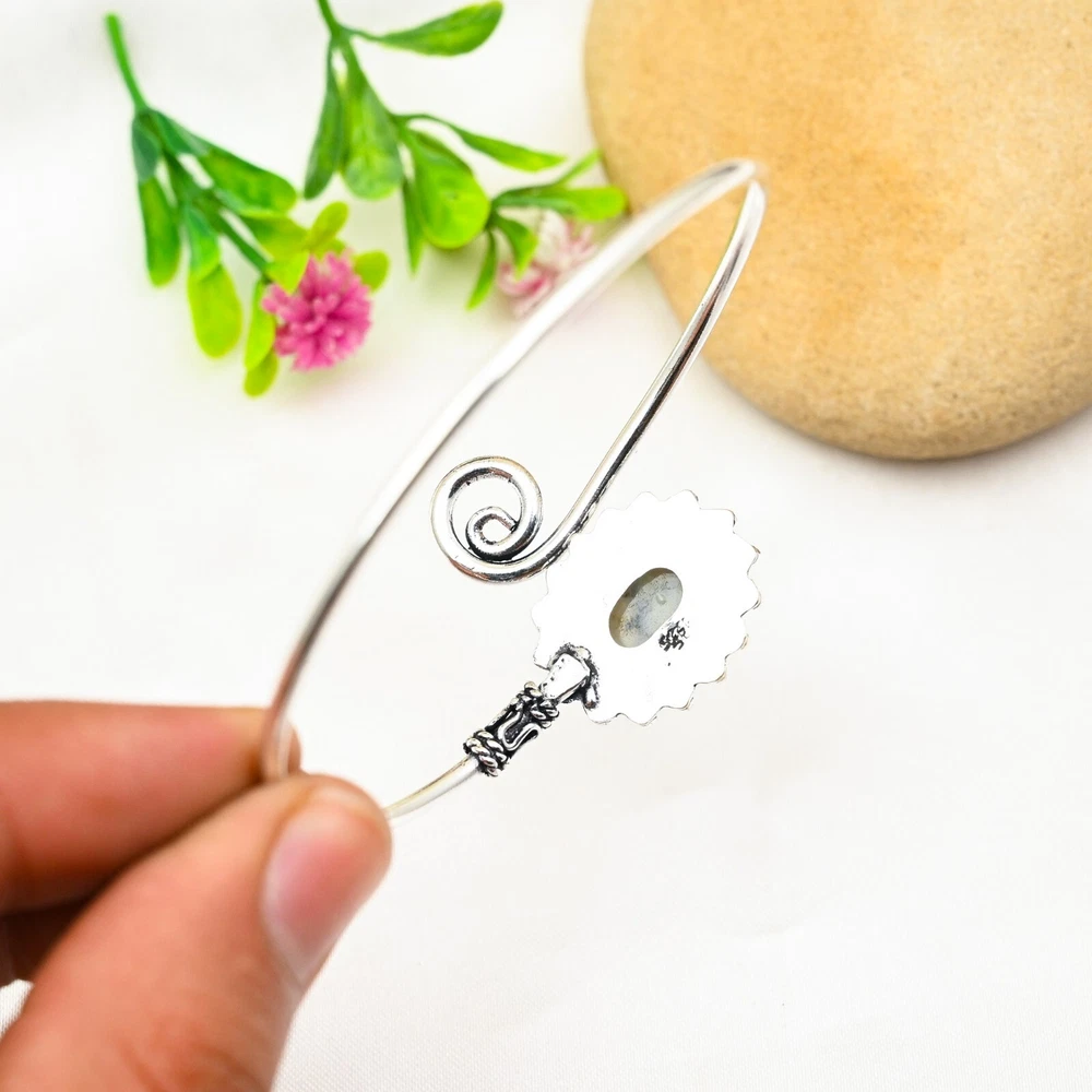 Dendritic Opal Gemstone Bangle 925 Sterling Silver Handmade Jewelry Party Gift