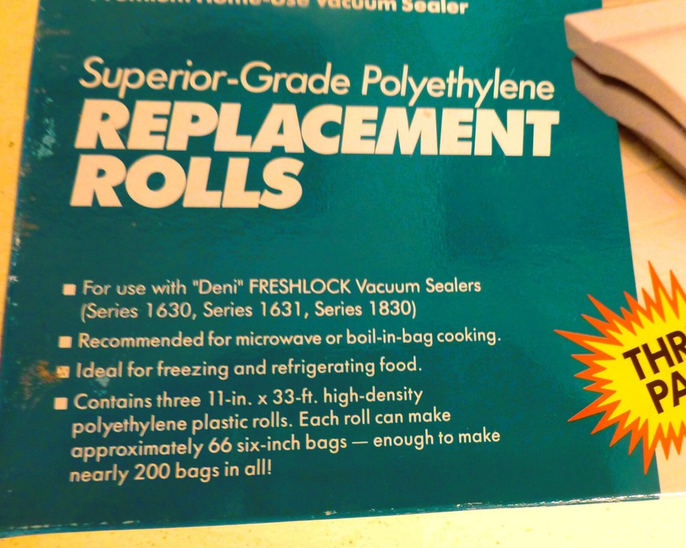 These replacement rolls work perfectly with my Deni Freshlock sealer—no leaks, great seal every time! The box had minor scuffs, but the rolls inside were untouched and ready to use. Shipping was fast, and the seller’s refund policy gives peace of mind. Highly recommend for keeping food fresh longer!