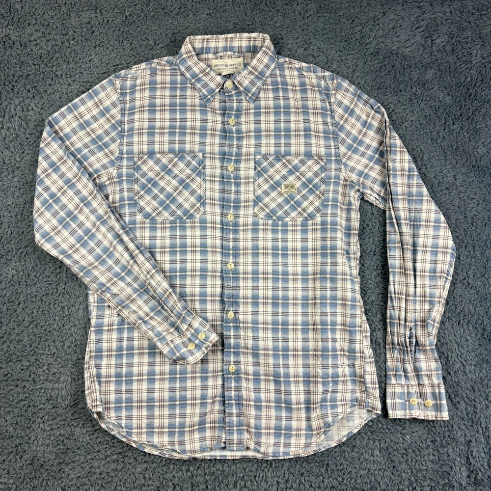 Genuine Denim & Supply Ralph Lauren Shirt Chest Width (Pit-to-Pit): 21.5" Body Length (Shoulder to tail): 29" Size: Medium (M) Excellent used condition. Please note that used items may have some pilling, wear and fading (especially around the collar and other seams). Any notable damage or excessive pilling/wear/fading will be noted. Items washed/cleaned in line with manufacturer guidelines. I will ship this item out via 2-3 Day Mail with a tracking number for confirmation I ship items out EVERY DAY so EXPECT a QUICK delivery! Please feel free to ask any questions you may have I answer most questions instantly!