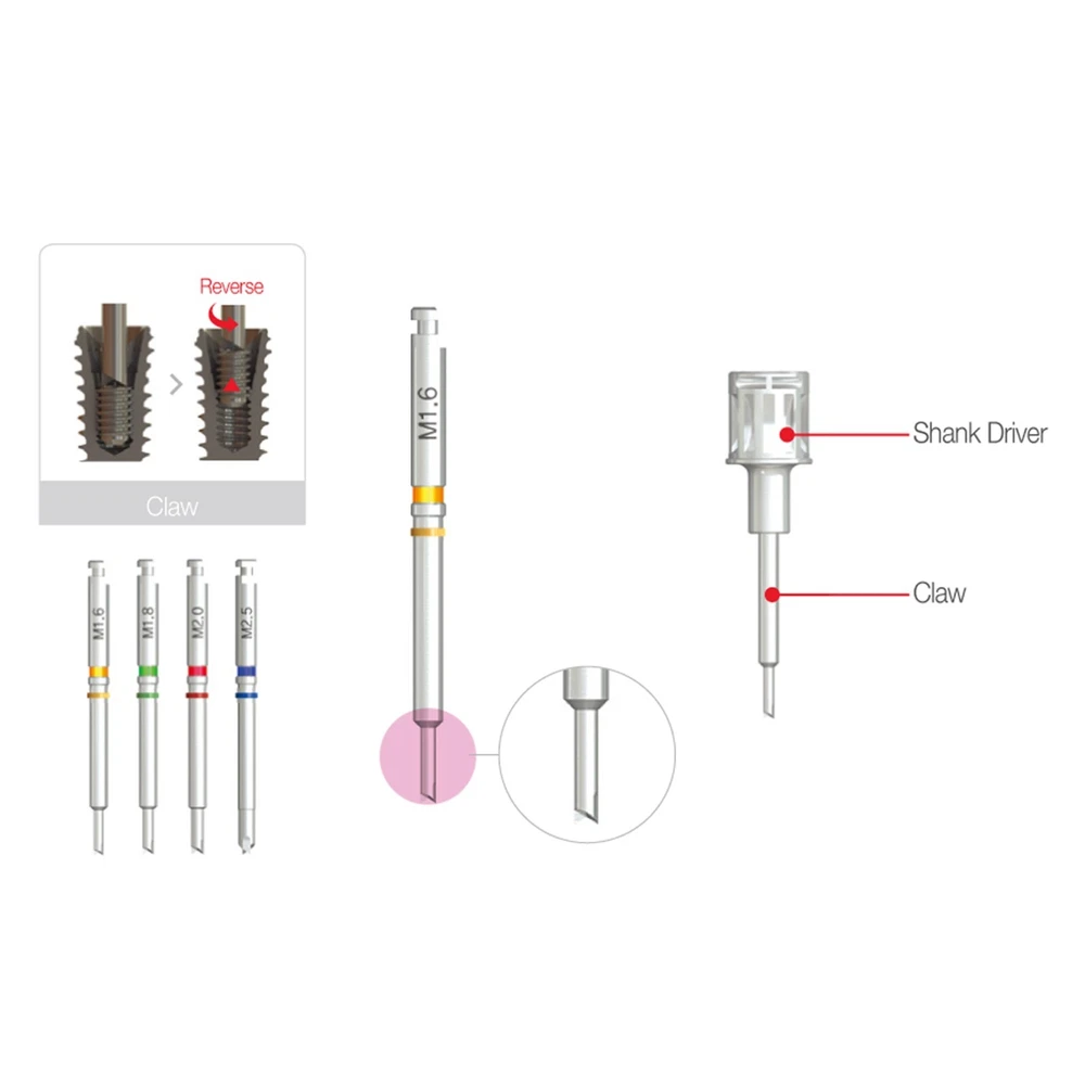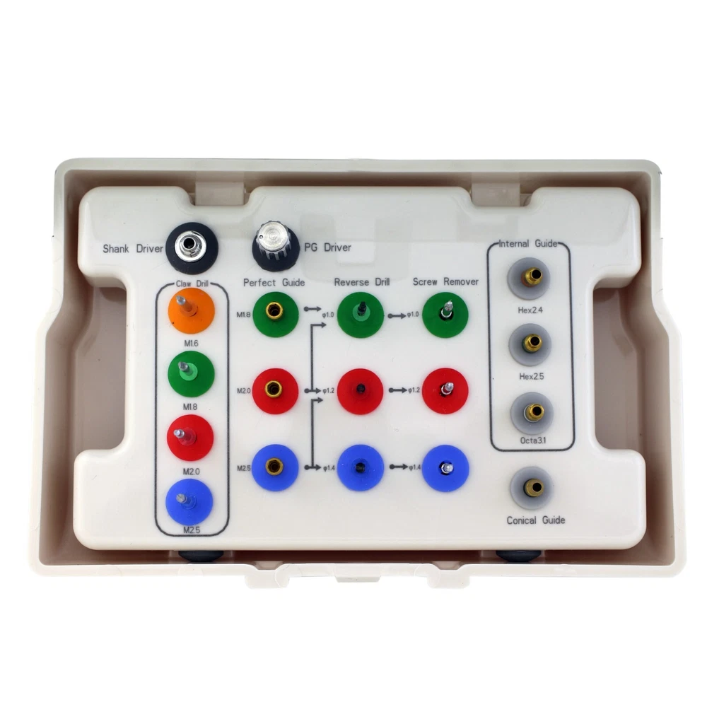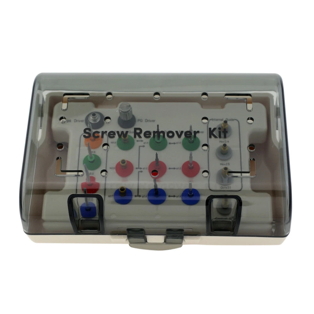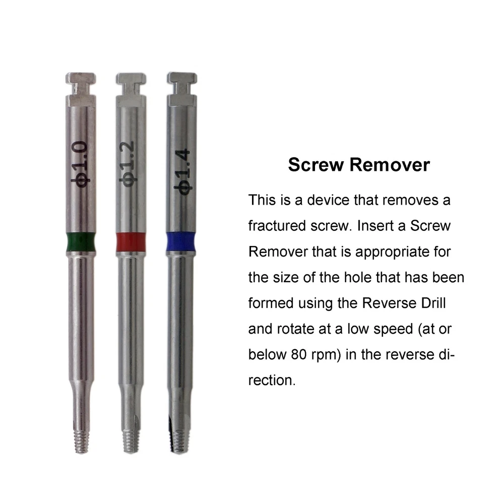 Implant Fractured Screw Removal Kit Broken Remover NeoBiotech SR Reverse Drill Features: Compete with NeoBiotech SR Kit Screw Remover Kit is a surgical tool developed in order safely and quickly to remove screws that have become fractured inside an implanted Fixture for various reasons. After removing the Screw, a new Abutment may be connected to the Fixture. Remove Fractured Screw, Screw Remover! No Worries About Fractured Screw. Claw: This is a surgical tool that removes a screw that has become fractured inside the Fixture. After selecting the size that is appropriate for the size of the screw that is to be removed, it must be used by connecting a guide to the Fixture (Conical/Internal/External Guide). Then it is connected to the Shank Driver, and the fractured screw can be removed by rotating by hand in the reverse direction. If the fractured screw cannot be removed using the Claw, it must be removed using the Reverse Drill and the Screw Remover. Product Name Fractured Screw size Product Name Fractured Screw size CD16 M1.6 CD20 M2.0 CD18 M1.8 CD25 M2.5 Reverse Drill: This is a tool that creates a hole on the fractured face of the Screw that will be used by the Screw Remover. After selecting the appropriate Reverse Drill for the size of the screw that needs to be removed, it must be used by connecting a guide for the fi xture (Perfect/ Conical/Internal/ External Guide). The depth of the drill can be adjusted from 1 mm to 3 mm, because the Drill body has markings. The removal of an M1.6 size Screw Should utilize the Claw. Although diff erent manufacturers produce diff erent sizes of abutment screws, except in rare cases, typically they utilize screws of Size M1.6, M1.8, M2.0, or M2.5. (‘M’ stands for a metric screw. The number indicates the external size of the screw. For example, “M1.6 Screw” indicates that it is a metric screw the external diameter of Wh ich is 1.6 mm). Product Name Diameter(Ø) Fractured Screw size RCD10 Ø 1.0 M1.8 RCD12 Ø 1.2 M1.8 RCD14 Ø 1.4 M1.8 Screw Remover: This is a device that removes a fractured screw. Insert a Screw Remover that is appropriate for the size of the hole that has been formed using the Reverse Drill and rotate at a low speed (at or below 80 rpm) in the reverse direction. The Screw Remover was designed in a tapered shape so as to increase, as it turns, the amount of friction, which is necessary to loosen the Screw. Product Name Diameter (Ø) Fractured Screw size SR10 Ø 1.0 M1.8 SR12 Ø 1.2 M2.0 SR14 Ø 1.4 M2.5 Shank Driver: This is a surgical tool that was designed to be connected to the Screw Remover to allow the use of the hand, Torque Wrench, or Ratchet. Product Name Standard Applicable Products SHD00 for Hand or Ratchet Screw Remover (SR10, SR12, SR14) Perfect Guide & PG Hand Driver: The Perfect Guide acts as a Guide for the Reverse Drill. It is used when the screw is fractured at the lower part of the female screw inside the Fixture. It is connected to PG Hand Driver and is directly applied to the Fixture female Screw. The Perfect Guide can be safely used because it has a stop structure inside that prevents the Reverse Drill from drilling more than 2 mm. Conical, Internal, External Guide : They act as the Guide when using the Reverse Drill. They are used when the Perfect Guide cannot be used, or if the screw was fractured at a location deeper than 2 mm into the lower part of the female screw inside the Fixture. The Guide appropriate for connecting to the Fixture must be selected. SR Driver Holder: This can be easily affixed to the Fixture by connecting it to the 3.5 Double Hex part of the Conical, Internal, or External Guide. FDA Statement: The sale of this item may be subject to regulation by the U.S. Food and Drug Administration and state and local regulatory agencies. If so, do not bid on this item unless you are an authorized purchaser. If the item is subject to FDA regulation, I will verify your status as an authorized purchaser of this item before shipping of the item. Seller's name: may-dent City State: Zhengzhou, Henan China Telephone number:+86371-61770155