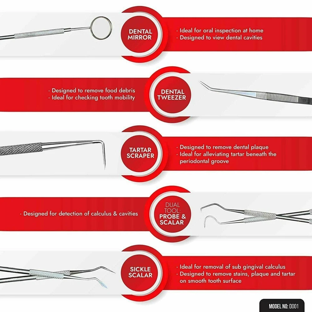 Welcome to Kumbala eBay Store - 100% Brand New - Maintain Your White Teeth At Home - Are You Brushing Daily After Every Meal And Still Cannot Remove Plaque And Stains - Then Your Search For The Best Dental Tools Has Come To An End - This Dental Kit Is The Perfect Solution For Your Teeth - Scaling and root planning tools help remove plaque, Tarter and bacterial toxins that cannot be removed by tooth brush from your teeth and help smooth out the root surface of your teeth - Professionally Made These Tools Remove Tartar And Clean Your Teeth Leaving Them Feeling Dentist Clean On A Daily Basis - This Teeth Whitening Kit Makes You Feel To Become Your Own Dental Hygienist Best Solutions Of Teeth Whitening Needs - Brush Your Teeth And Tongue Thoroughly Twice A Day - Use Tongue And Gum Cleaners To Maintain High Oral Hygiene - Dental Floss - Remove Germs And Food Particles Between Teeth. Rinse - They're amazingly handy for all types of fine scraping, cleaning, scribing, and shaping tasks - Fits gently into nostrils, holding them wider apart and making breathing easier and quieter - Schedule Two Annual Dental Visits For Professional Cleaning And Dental Examinations Each Year - Dental Scraper Tools comes with a variety of tips shaped to get into odd corners, crevices, and other areas Grade Stainless Steel Polished to High Standard finish - Fully guaranteed against defect in material and workmanship - All Instruments are fully autoclavable - Premium Grade Surgical Stainless Steel - Polished To High Standard Finish - Hand Crafted With Professional Standards Included in this package: - 5X Dental Cleaning Kit - 1X Organizer Bag Warranty & Customer Service : 30 days money back 12 months seller's guarantee, 24 Hours friendly customer service!