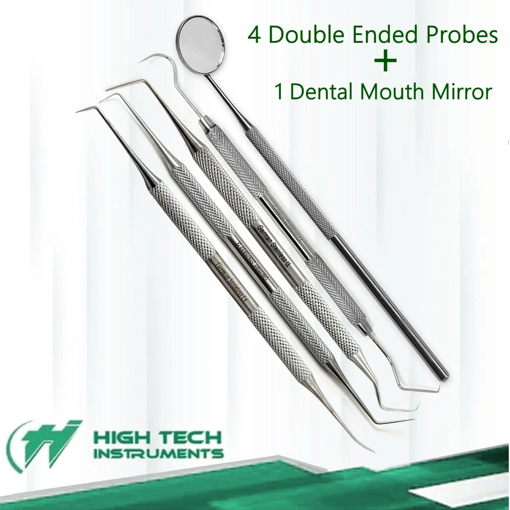 Purchase Includes 5 Pcs: 1 GERMAN DENTAL DOUBLE ENDED EXPLORER PROBE # 6 1 GERMAN DENTAL DOUBLE ENDED EXPLORER PROBE # 3/6 1 GERMAN DENTAL DOUBLE ENDED EXPLORER PROBE # 6/17 1 GERMAN DENTAL DOUBLE ENDED EXPLORER PROBE # 6/90 1 GERMAN DENTAL MOUTH MIRROR #5 FEATURES : Manufactured from AISI 420 Premium Quality stainless steel. Product Conforms to ISO 9001, CE-Quality Mark, ISO 13485, FDA and other Quality Standards Smooth finish for aesthetic and corrosion resistance High Degree of Precision and Flexibility while conducting the Clinical Procedure. Premium Quality Stainless Steel with Superior Craftsmanship. Rigid Quality Control. 100% Money Back Satisfaction Guaranteed. Ultrasonic Cleaned. Anti Rust. Autoclavable. Passivated SHIPPING : All orders are usually processed within 24 hours after payment completed received. Orders are shipped on business days only. Business days are Monday-Friday, excluding federal holidays within the United States. Valid Tracking will be emailed automatically. FEEDBACK : Do not hesitate to contact us anytime before and after your purchase. We are committed to your 100% customer satisfaction. We back our commitment with superb service, 100% full money back and a customer satisfaction guarantee. SHIPPING DISCOUNTS : We offer FREE SHIPPING on most of our items. IN case the customer is buying multiple products that has shipping charges , they can refer to the following: Add the desired items in your basket/cart by clicking at the button that says "Add to Basket" You will find it just underneath the Buy It Now Button" Repeat the same process as in Step 1 for any other item(s). Once you have added all the items you want, please click at the option that says "Request Seller Totals" from the Cart Area. eBay will then allow us to revise the invoice and apply shipping discounts onto your invoice. We will send you a revised invoice notification that you may receive into your eBay message inbox. Once you review the invoice and are happy with your totals, Please go ahead and pay via "PayPal"option within the invoice. ABOUT THE PRODUCT : 100% Brand New & High Quality 100% Original Pictures Buy with Confidence 100% Customer Satisfaction Guaranteed Excellent Quality Shipping within 1 Business Day. All of Our Products Are Unconditionally Guaranteed Against Defects In Material And Workmanship. Material: Stainless Steel Rusting Prevention Procedure: Yes Ultrasonic Cleaned: Yes Lubricate: No Passivated: Yes Autoclaveable: Yes Sand-Blast: No Gold Platted: No QC Passed: Yes Surgical Grade Stainless Steel: Yes Usage: Left Hand or Right Hand Packing: Individually Packed Tests Performed: Boil Test, Shape Test, Performance Test HTI Branded Products Manufactured for Optimal results and Precision Manufactured from High Quality Medical Grade Stainless Steel High Degree of Precision and Flexibility while conducting the Clinical Procedure All Products are Passivated, Ultrasonic Cleaned, Rust Free, Reusable / Full Autoclavable High Degree of Aesthetic and Corrosion Resistance All Products Conforms to ISO 9001, CE-Quality Mark, ISO 13485 and other Quality Standards. SHIPPING / RETURN POLICY : Feedback from Customers will highly be appreciated and if you are not happy with the quality or design of a product. You can raise an issue with us before you leave any feedback. We will try our level best to resolve your issue without wasting your time and money. If you are not happy with our Product, Simply send back to us and we will issue a 100% Refund If you are experiencing problems with your delivery or have a problem with the product you have received, please message us SEND US A MESSAGE via ebay messaging system. We will get back to you within 12-24 hours of your message and resolve your stated issue. If for some reason you are not satisfied with our product, please send us a message and we will either send you a brand new replacement or refund your money. However, we will ask you to return our product(s) is in its original packaging and in its new condition. If our returned product(s) has a manufacturing fault , we will be more than happy to compensate your postage costs for returning the item(s). Unlike other sellers your money is a trust given to us and belongs to you until you are satisfied with your product(s) bought. All customers are requested to please SEND US A MESSAGE if you have any complain regarding the product or if you have not yet received your item. Please Do Not Open a Dispute case or leave a negative feedback without having a Seller Resolution . In 99.9% cases, we give resolution in favour of Buyer and work closely with them to ensure their complete satisfaction with us. Most deliveries are via our shipping carrier partner, UNITED STATES POSTAL SERVICE ( USPS ) ; however, orders that weigh more than 5 LB or which are requested for Expedited Shipping are shipped otherwise. All efforts are made to ensure speedy, safe deliveries to our customers. Almost all of our product listings are with standard shipping , which unfortunately do not provide tracking at an international level. This is because we want all of our products to be at an easy reach of every customer by charging a normal postage value . However, if a customer purchases more than four different items , we may send the items via Recorded Delivery at the sellers discretion. All orders are dispatched within the same business day if purchase is made by 3:00 pm; or else they will be dispatched within 24 Hours after the cleared payment into our Pay Pal account. If the customer desires a different shipping method (i.e. Recorded Delivery, Express Courier Delivery, etc.), then please send us a message before the payment. The customer will receive a revised invoice with its additional charge. Once the customer's payment is cleared , their order is shipped within 24 hours . At times, there may be a delay depending on stock unavailability . If that is the case, we will notify the customer within 12 hours , the customer may choose t