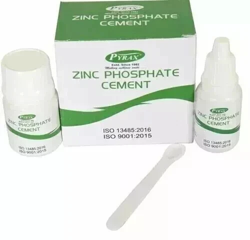 Dental Zinc Phosphate Cement Permanent Tooth Filling Fixation PL Kit Product Description Zinc Phosphate cement is a two component product i.e powder and liquid, Which contains inorganic metal salts and phosphoric acid respectively. Application :- Zinc phosphate cement is used for Cementations of crowns, bridges, inlays and orthodontic brackets. Cavity lining under all restorative materials temporary fillings, direct or indirect pulp capping. Composition:- Powder- Zinc oxide , Magnesium oxide, Strontium Chloride, Tannic acid , Liquid – Ortho phosphoric acid and excipients. Packing: - 1 x 30g powder jar, 1 x 15ml Liquid, 1 x spoon, 1x Mixing pad Images are for Illustration Purpose Only Please Give us Positive Feedback for Our Services . Thankyou for Buying with us . Have a nice day .