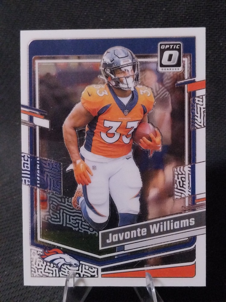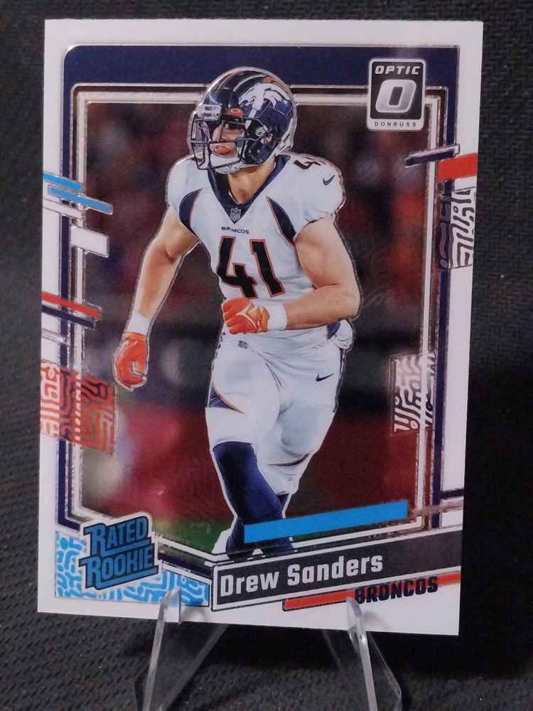 This lot includes 5 sports cards featuring players from the Denver Broncos team. The cards are from the 2023 Donruss Optic set, manufactured by Panini in 2024. The set includes both base cards and rookie cards, making it a great addition to any collection. The players included in this lot are Javonte Williams, Russell Wilson, Marvin Mims, Drew Sanders, and Courtland Sutton. These cards are perfect for any fan of the National Football League (NFL) and are a must-have for any collector. Don't miss out on the opportunity to own these rare and sought-after cards. Don't hesitate to shoot us an offer as no price is set in stone. We are always willing to negotiate! Thanks for checking out our listing!