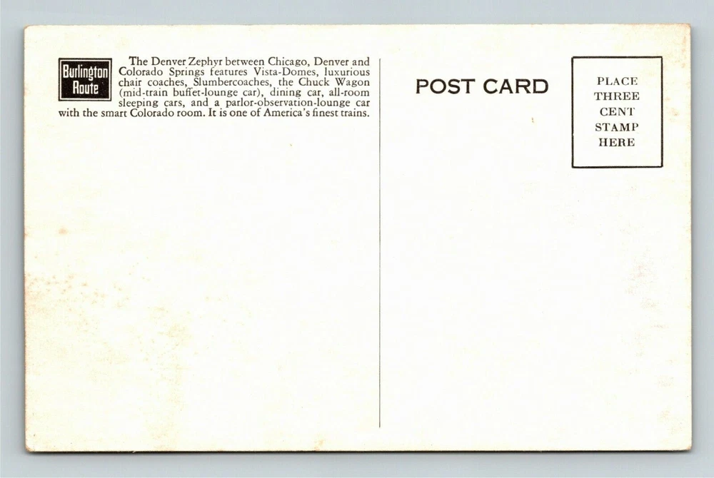 Continent: North America Subject: Passenger Train City: N/A Region: N/A Type: Printed (Lithograph) Theme: Transportation Era: Chrome (1939- Present ) Unit of Sale: Single Unit Country/Region of Manufacture: United States Features: Chrome Country: USA Original/Licensed Reprint: Original Postage Condition: Unposted