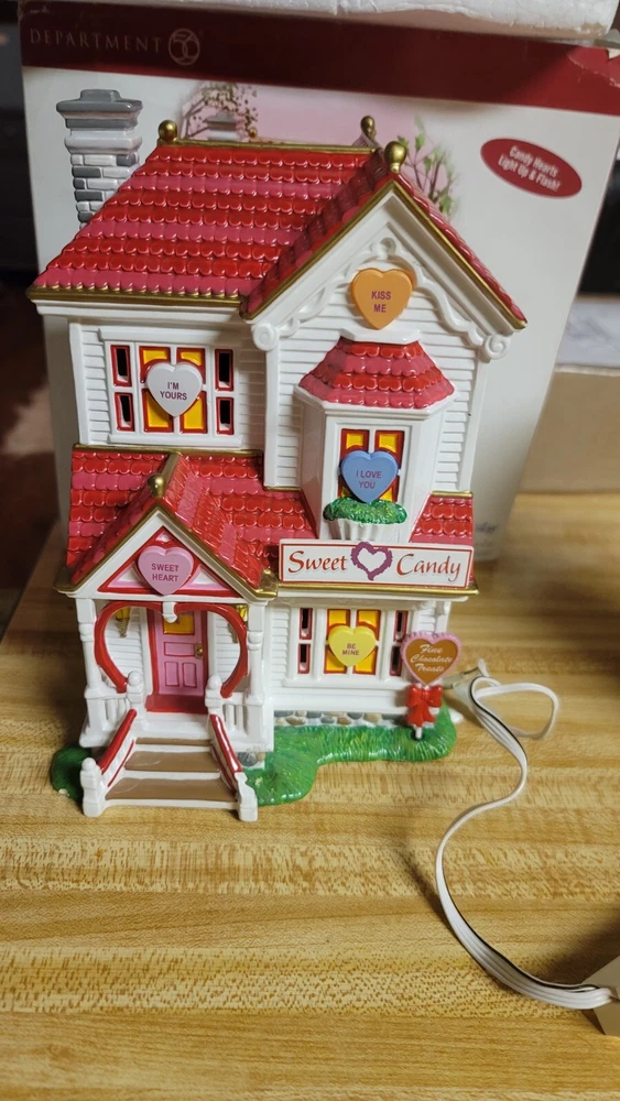 The building is missing 1 tree and is not on the model. It also has a chip on it as well. I'm not sure if it lights up at all. Need plug to make it fully work. (Please see images for greater details.) It is missing the 3V DC Power Adapter, you will have to buy that separately from Department 56's website. Here is the direct link to buy it for $15.95 - https://department56.com/collections/replacement-parts/products/replacement-adapter-3v-dc-650ma-white-male-aux-clip ************* Please make sure you understand that you will need to buy the DC Power adapter for the lighting.*************** Comes in original box and styrofoam packaging.