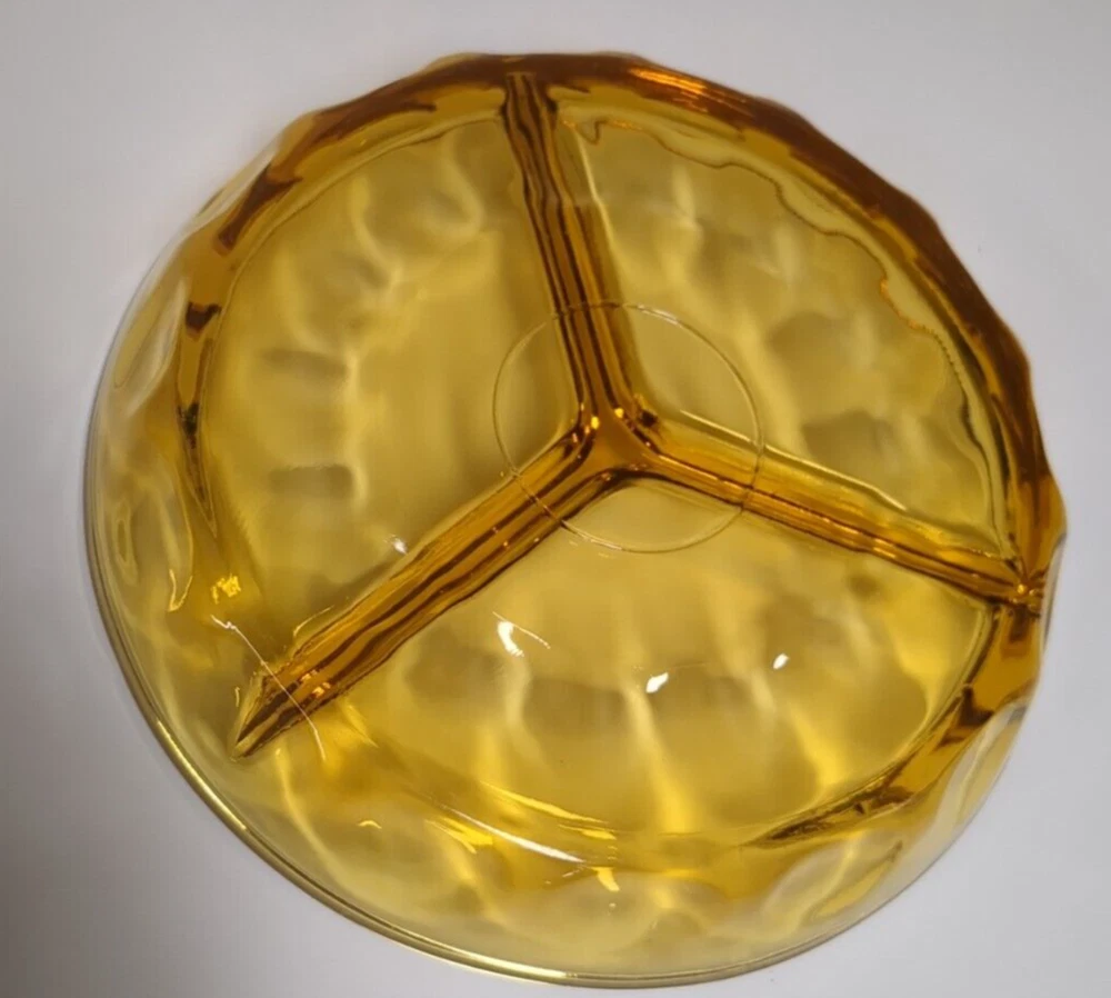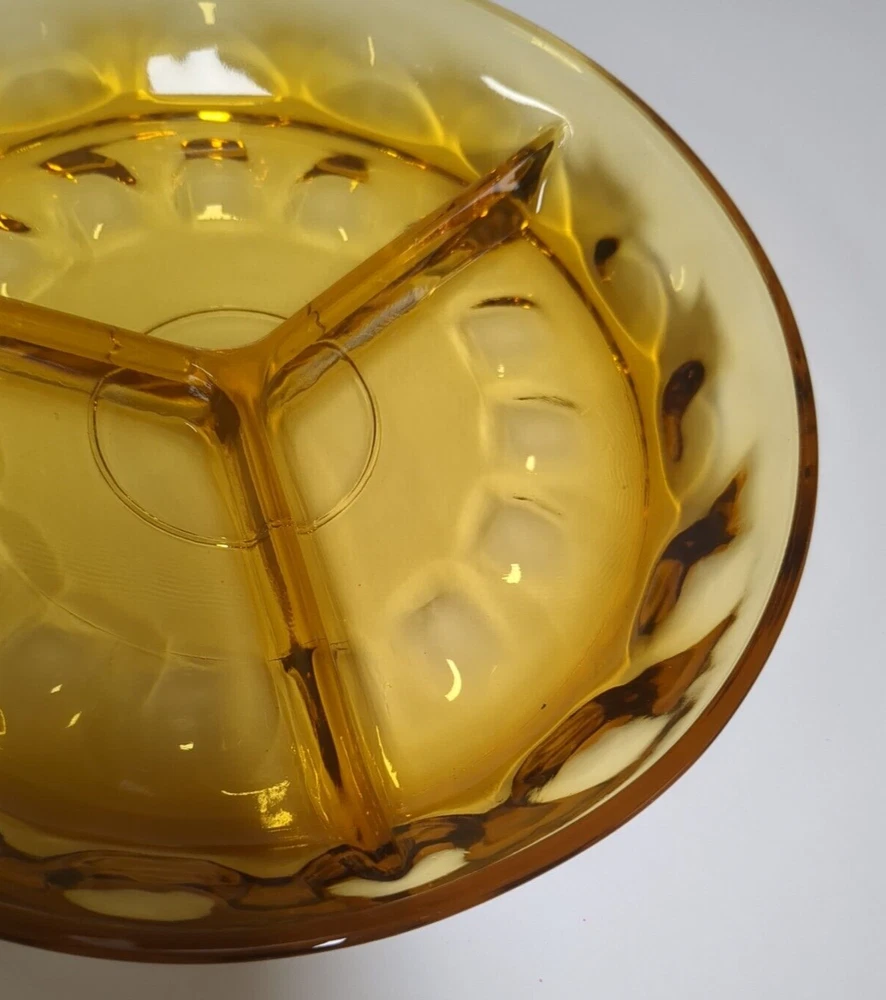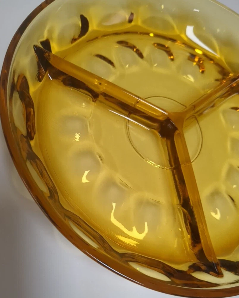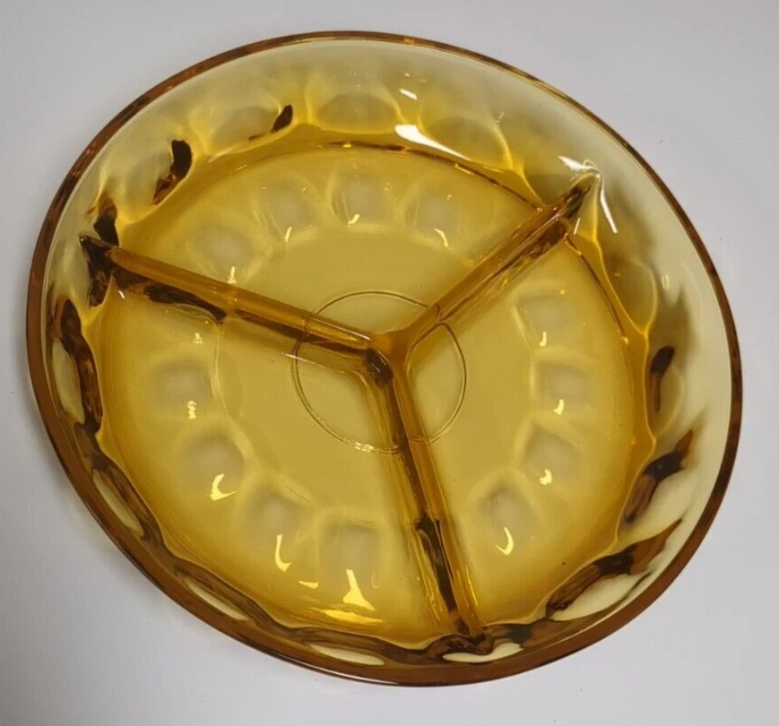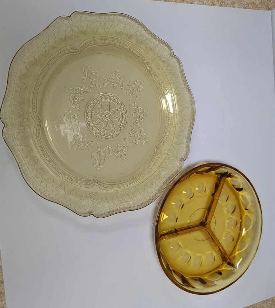 Here you have a beautiful Federal glass patrician spoke plate or serving plate in amber and a thumbprint relish tray in a dark amber. Both are vintage pieces and are sure to make a beautiful addition to your collection.