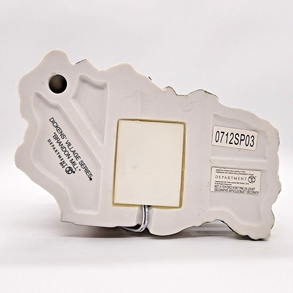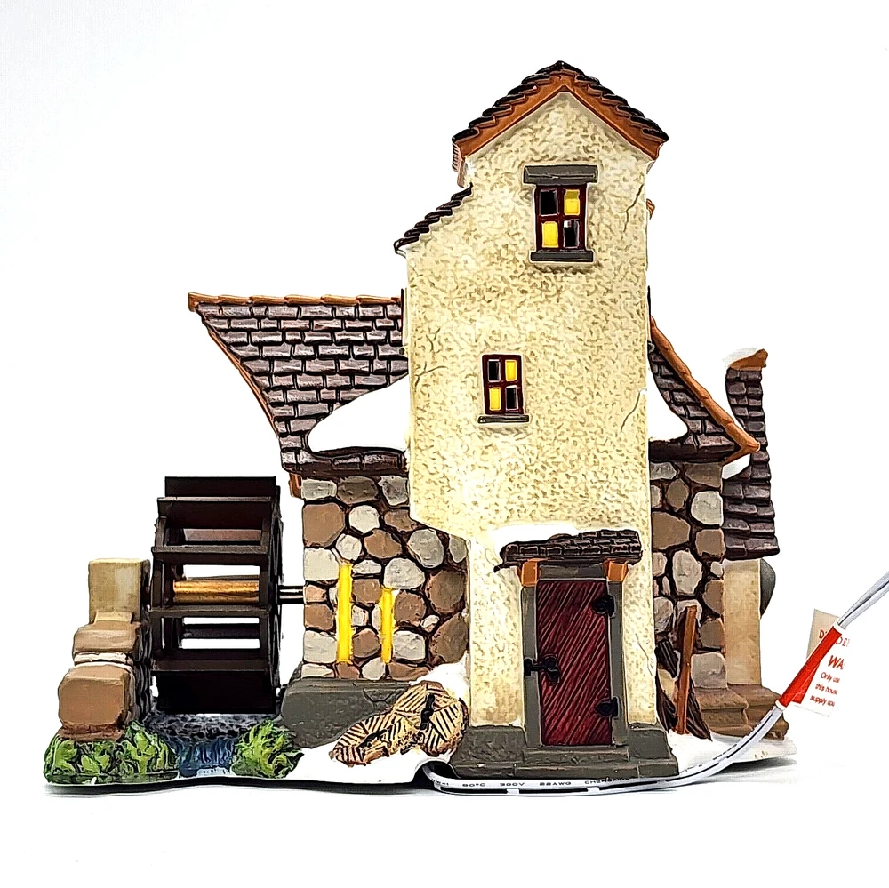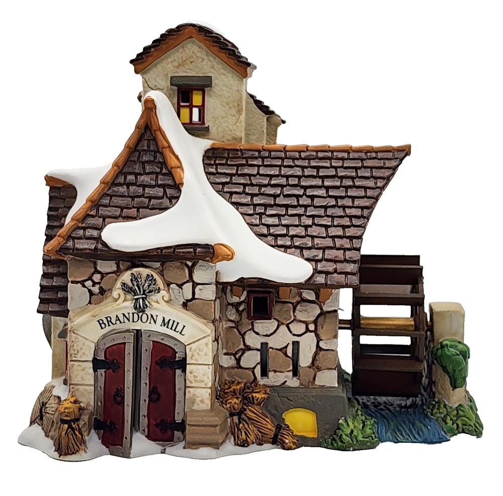Step into Victorian England through the Dept 56 Dickens Village Series. Charles Dickens, the famous English novelist, played a role in the English culture during this period, inspiring much of the world. Many of our Christmas traditions came from this time period. Several of the pieces correlate with his novels such as A Christmas Carol, Oliver Twist, David Copperfield and others. The Dickens Village is a beautiful collection of porcelain hand painted buildings, people, carriages, bridges, trees and other accessories. Have a great time designing your village! Dickens Village 'Brandon Mill' Produced Jan 2012- 6.75"L x 4.25"W x 6"H Water wheel spins and building is lighted with adapter cord. New, in excellent condition- building and foam box. Sleeve in good condition, has tiny tear on bottom edge of sleeve and corners slightly crimped. Removed to test and for pictures. Never displayed.