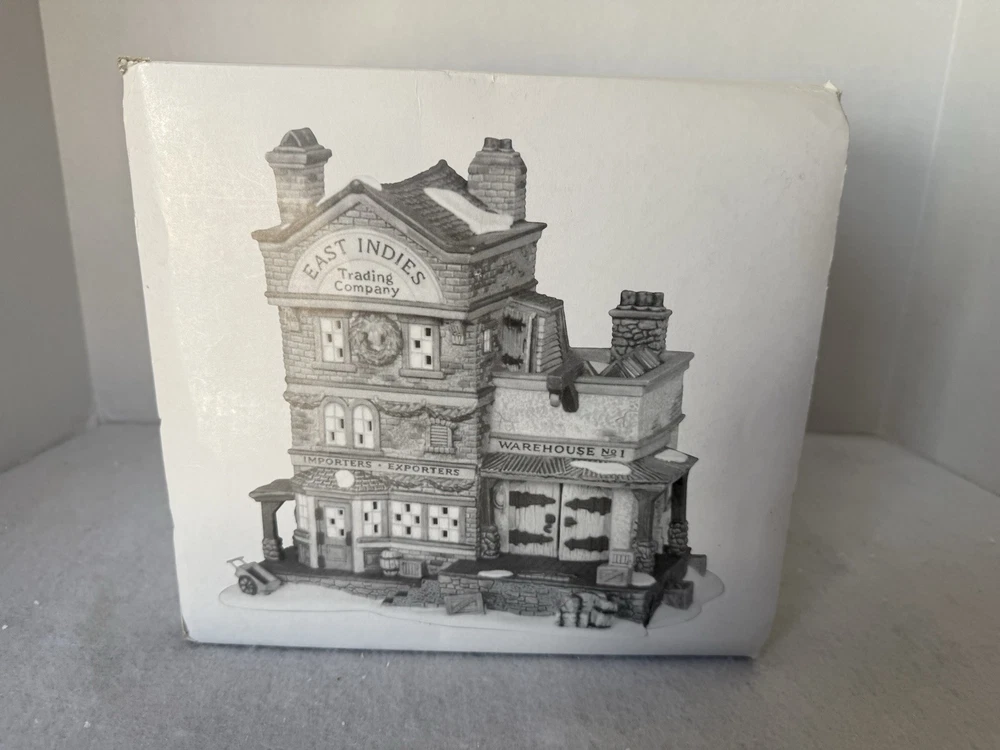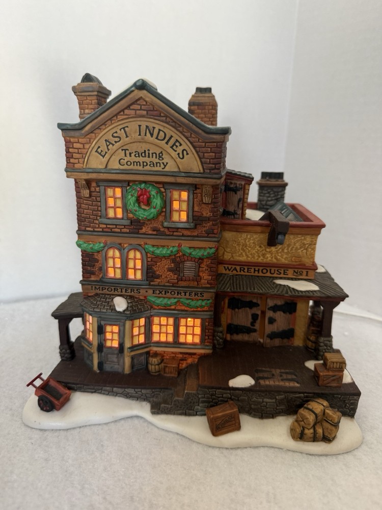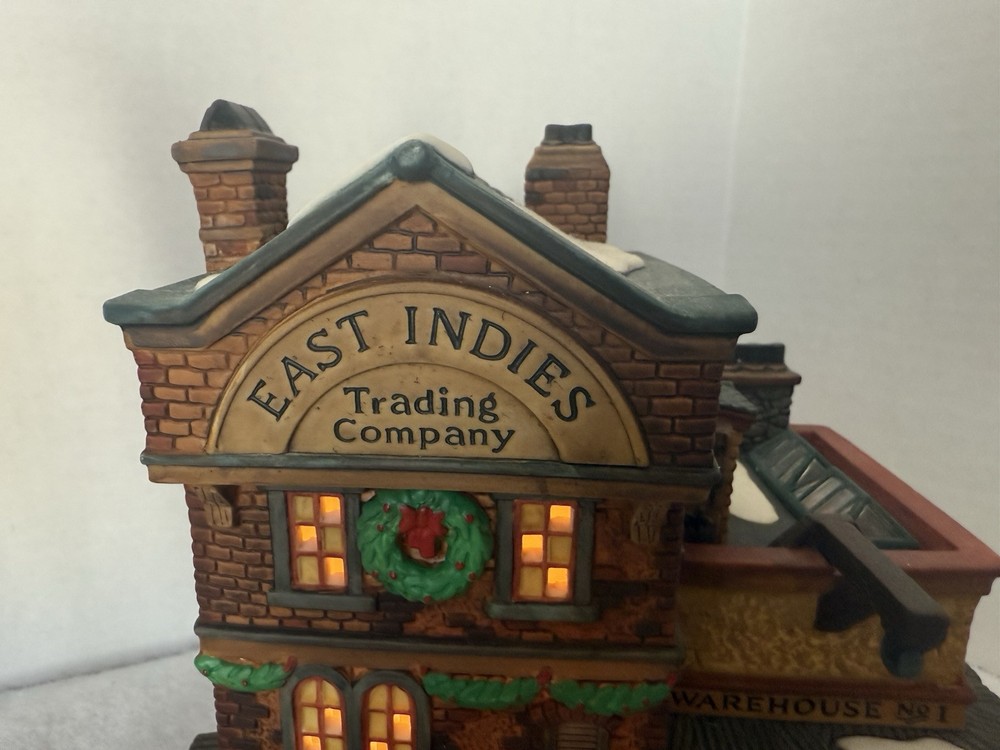 Item is in good preowned condition, demonstrates mild wear. Box demonstrates wear. Please see pictures for full description. Dept 56 Dickens' Village Series "EAST INDIES TRADING CO." #58302 W/ Box & Light Bin JJ