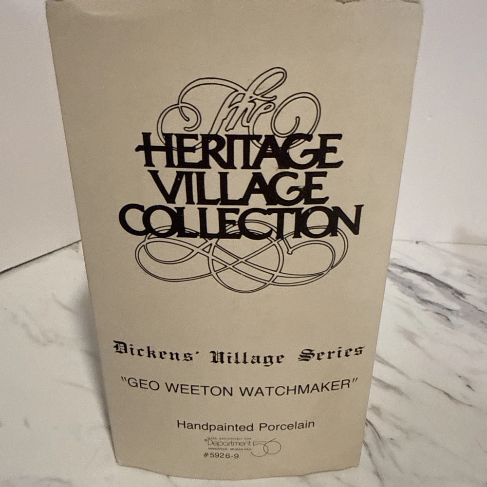 Dept. 56 Dickens Village Series “GEO Weeton Watchmaker" Heritage - 5926 w/Box Pre-Owned in excellent condition. See all photos for best representation. Includes original box/sleeve in good condition. Thank you for looking and supporting my small business!