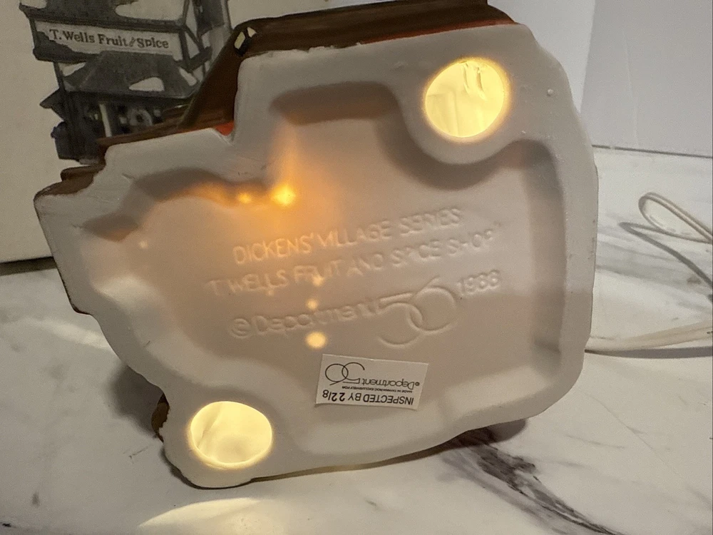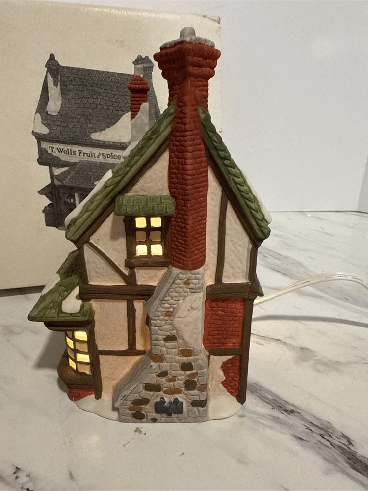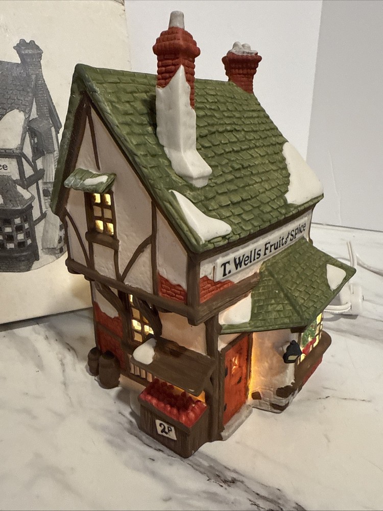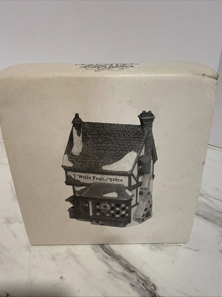 Dept 56 Dickens Village - T. Wells Fruit Spice Shop - Vintage 1988 5924-2 READ Pre-Owned in very good condition. Note: The cardboard sleeve for foam box is damaged. See all photos for best representation. Thank you for liking and supporting my small business!