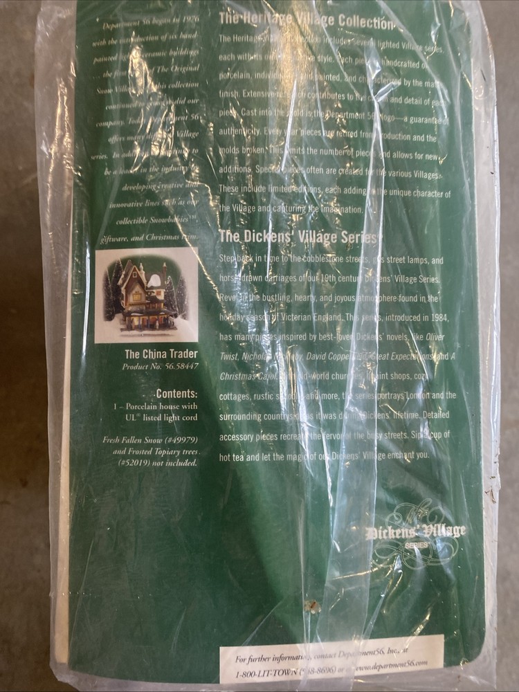 This Department 56 Dickens Village building from 1999 is part of the Christmas Village collection and features "The China Trader" as its main feature. The asymmetrical porcelain building is designed in a Victorian style and depicts a village scene with a fire character, making it a unique addition to a Christmas display. The multi-color structure is medium-sized and includes intricate details typical of the Dickens Village series, perfect for collectors or holiday enthusiasts. This has never been used before.