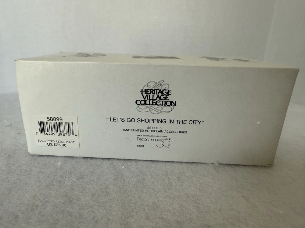 Pieces are in excellent preowned condition, no defects noted. Please see pictures for full description. Box demonstrates mild wear. Dept 56 Heritage Village Let's Go Shopping In The City #58899 W/ Box 3 Figures