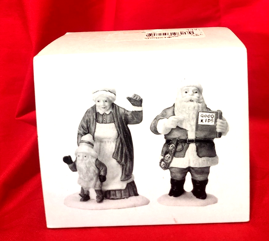Dept. 56 Heritage Village Collection "Santa & Mrs. Claus" is a set of 2 small figurines from 1989 suitable for Christmas occasions. Handmade from porcelain, these retired figurines feature Santa and Mrs. Claus in a multicolor design. They are boxed and part of the Heritage Village Collection by Department 56, representing a late 20th-century era. Ideal for village displays, these figurines are from China and are a part of the Heritage Village Collection character family. New without tags. Have never been removed from the box.