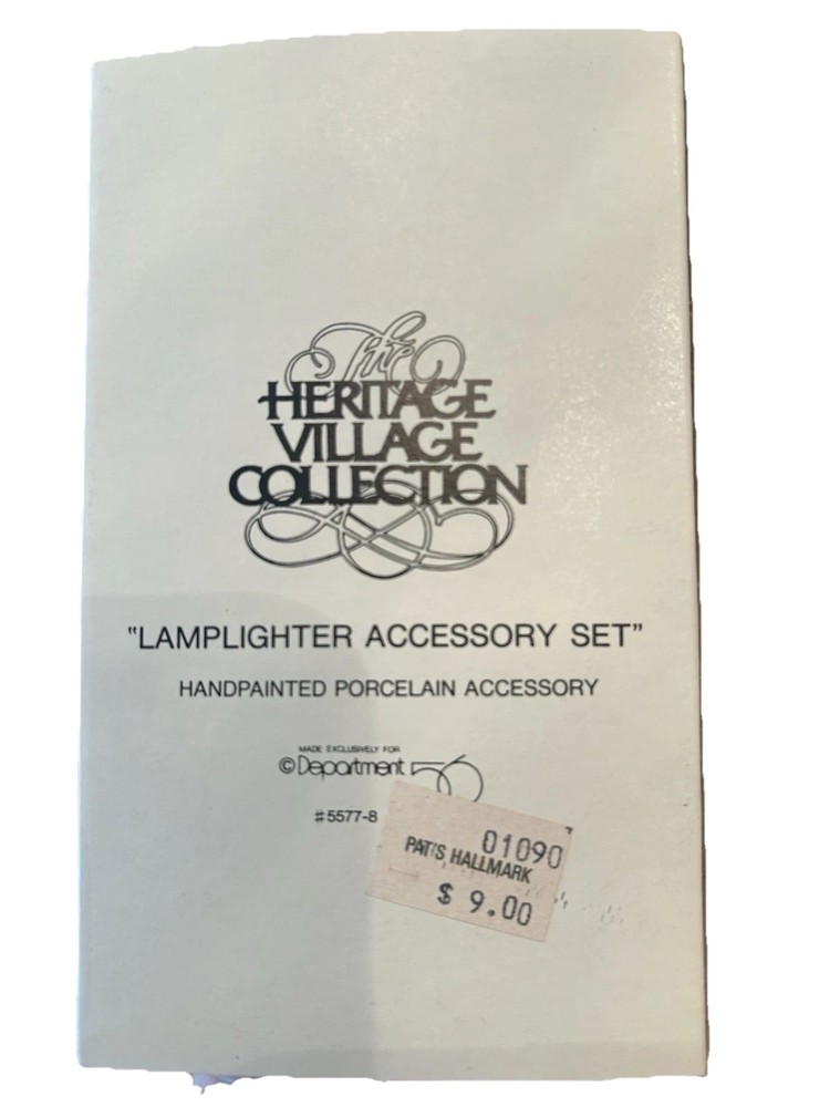 Add charm to your festive decor with the Department 56 Lamplighter Accessory Kit from The Heritage Collection. This small, multicolored porcelain set includes charming carolers that exude the spirit of the Victorian era. The intricate painting details capture the essence of the period and make them ideal for any room in your home. The kit comes in its original box, ensuring safekeeping and adding to its collectible value. Crafted in 1995, this accessory kit is a perfect addition for those who appreciate the elegance of seasonal celebrations and the nostalgia of cities and styles from the past.