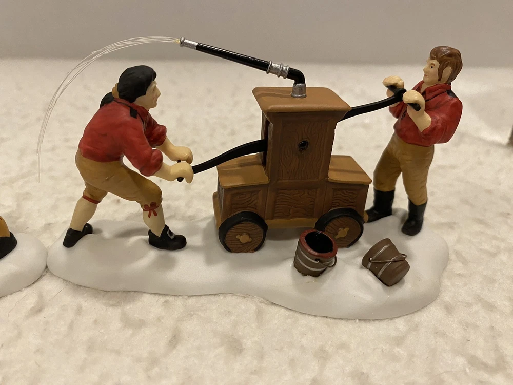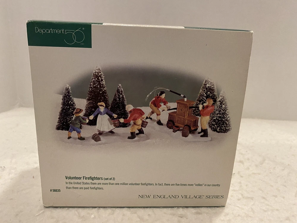 Pieces are in very good preowned condition, please see pictures for full description. Dept 56 VOLUNTEER FIREFIGHTERS (Set of 2) New England Village 56635 56.56635 Box Bin EE