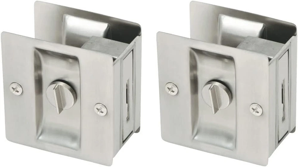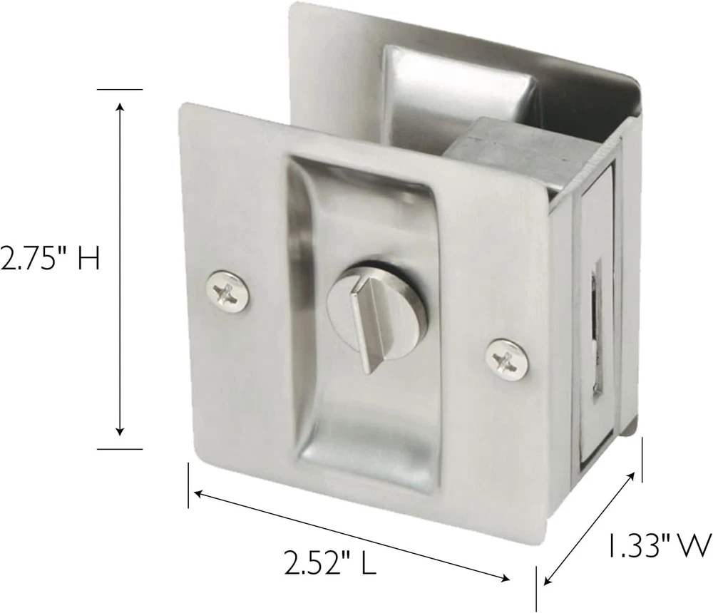 Store New Arrivals Add to Favorite View Feedback Contact Design House 182121 Pocket Door Privacy Bed and Bath Lock 2-Pack Satin Nickel Description Item model number 182121 Style Pocket Door Lock Pattern Traditional Country of Origin China Warranty Description 1-Year limited warranty Batteries Included? No Batteries Required? No Finish Satin Product Dimensions 2.52 x 2.75 x 1.33 inches Material Brass Manufacturer Design House Item Package Quantity 1 Included Components Pocket Door Pull Item Weight 0.221 ounces Special Features Keyless Part Number 182121 Mounting Type Door Color Satin Nickel Wattage 60 watts Shape Door Accessories Size 2.75 x 2.52 x 1.33 Number Of Pieces 1 Mounting hardware included for easy installation Can be mounted on left and right hand doors Boasts a sleek, satin nickel finish Twist-knob lock allows you to use this where privacy is desired This item measures 2.75-inches by 2.52-inches by 1.33-inches The Design House 182121 2-Pack Rectangular Privacy Pocket Door Passage is finished in satin nickel. Ideal for sliding closet doors, this pocket allows you to smoothly open and close doors when needed. The twist-knob lock allows you to use this for bathrooms or other rooms where privacy is desired. This door hardware is made of solid brass and measures 2.75-inches by 2.52-inches by 1.33-inches. Designed and manufactured by Design House, the trusted source for quality lighting, hardware, plumbing, kitchen, and bath products for every taste and budget. ABOUT US We offer the best prices around on high quality products. Our E-store includes media such as books, movies, music and games while offering electronics, toys, sporting apparel, clothing, tools, general home, garden items and more. SHIPPING We are always working hard to ensure your package arrives as soon as possible. Please understand that some factors like weather, high postal traffic, and the performance of shipping companies are outside of our control. We offer free shipping to the lower 48 states and ship within 2 business days of payment, usually sooner. We do not accept P.O. Boxes. Please provide a physical address. RETURNS We offer a 30-Day Return Policy on items which you are not completely satisfied with. You have the option for a full-refund or an exchange of the item. No returns are available on items shipped outside of the USA. PAYMENT We accept PayPal. CONTACT US This page content is yet to come Please ad us to your favorite seller and visit again later Thank You CUSTOMER SATISFACTION We try our very best to make sure every customer is completely satisfied. If there's a problem, message us! We're happy to help.