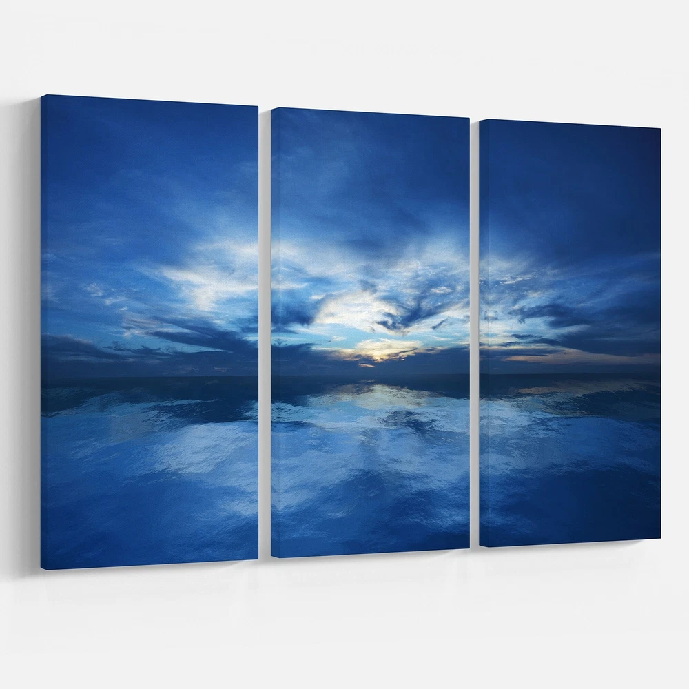 This beautiful Sea & Shore Canvas Art is printed using the highest quality fade resistant ink on canvas. Every one of our fine art giclee canvas prints is printed on premium quality cotton canvas, using the finest quality inks which will not fade over time. Each giclee print is stretched tightly over a 1 inch wood sub frame ensuring the canvas is taught and does not buckle. This canvas art print is gallery-wrapped (the design continues on the sides) , giving it a real art gallery feel. All of our canvas prints are carefully packaged with plastic protection, fragile labeling and sturdy boxes to ensure a safe delivery. Every canvas print arrives ready to hang on the wall, with the hanging kits included.- Style : Nautical & Coastal- Subject : Sea & Shore, Nautical- Color : Blue- This canvas Free Shipping Over $49.99* Details Designart "Blue Waters and Blue Sky Sunset" Modern Seascape Canvas Artwork - Product Description: This beautiful Sea & Shore Canvas Art is printed using the highest quality fade resistant ink on canvas. Every one of our fine art giclee canvas prints is printed on premium quality cotton canvas, using the finest quality inks which will not fade over time. Each giclee print is stretched tightly over a 1 inch wood sub frame ensuring the canvas is taught and does not buckle. This canvas art print is gallery-wrapped (the design continues on the sides) , giving it a real art gallery feel. All of our canvas prints are carefully packaged with plastic protection, fragile labeling and sturdy boxes to ensure a safe delivery. Every canvas print arrives ready to hang on the wall, with the hanging kits included. - Style Nautical & Coastal - Subject Sea & Shore, Nautical - Color Blue - This canvas giclee print is gallery-wrapped (the design continues on the sides) , giving it a real art gallery feel. - Premium quality cotton canvas. - Arrives ready to hang on the wall - Easy to Hang