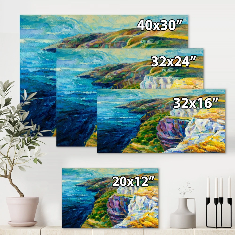 This beautiful Nautical & Coastal Canvas Art is printed using the highest quality fade resistant ink on canvas. Every one of our fine art giclee canvas prints is printed on premium quality cotton canvas, using the finest quality inks which will not fade over time. Each giclee print is stretched tightly over a 1 inch wood sub frame for small size prints or a 1.5 inch wood sub frame for large size prints (40x30 36x36 ...) ensuring the canvas is taught and does not buckle. This canvas art print is gallery-wrapped (the design continues on the sides) , giving it a real art gallery feel. All of our canvas prints are carefully packaged with plastic protection, fragile labeling and sturdy boxes to ensure a safe delivery. Every canvas print arrives ready to hang on the wall, with the hanging kits Free Shipping Over $49.99* Details Designart "Cliffs By The Blue Ocean II" Nautical & Coastal Canvas Wall Art Print Product Description: This beautiful Nautical & Coastal Canvas Art is printed using the highest quality fade resistant ink on canvas. Every one of our fine art giclee canvas prints is printed on premium quality cotton canvas, using the finest quality inks which will not fade over time. Each giclee print is stretched tightly over a 1 inch wood sub frame for small size prints or a 1.5 inch wood sub frame for large size prints (40x30 36x36 ...) ensuring the canvas is taught and does not buckle. This canvas art print is gallery-wrapped (the design continues on the sides) , giving it a real art gallery feel. All of our canvas prints are carefully packaged with plastic protection, fragile labeling and sturdy boxes to ensure a safe delivery. Every canvas print arrives ready to hang on the wall, with the hanging kits included. - Style Nautical & Coastal,Tropical - Subject Beach, Landscapes - Color Green, - This canvas giclee print is gallery-wrapped (the design continues on the sides) , giving it a real art gallery feel. - Premium quality cotton canvas. - Arrives ready to hang on the wall - Easy to Hang