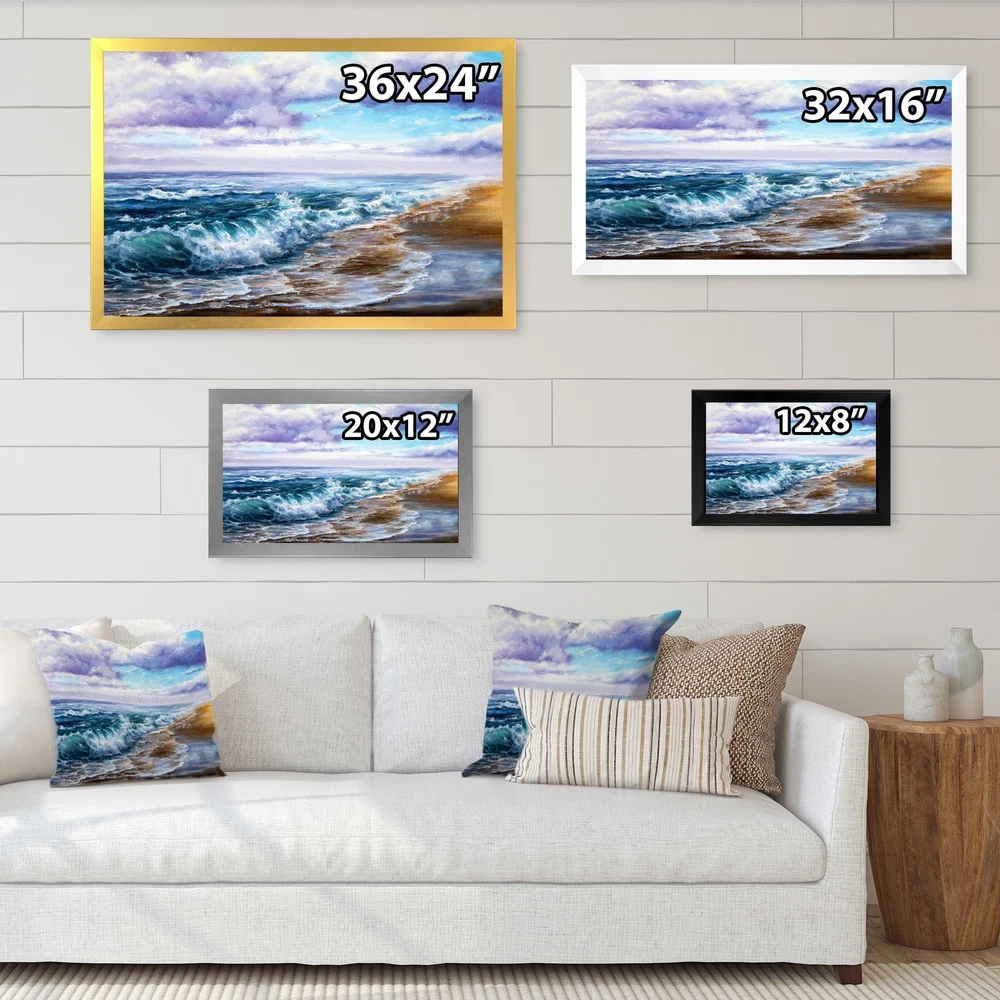 This beautiful Coastal Waves Painting Framed wall Art is printed using the highest quality fade resistant ink on canvas. Every one of our Framed Giclee Prints is printed on premium quality canvas, using the finest quality inks which will not fade over time and then mounted and framed on a 1.5 inch wide frame.This framed art print is available in many different color frames. All of our framed art prints are carefully packaged with corner protectors, fragile labeling, and sturdy boxes to ensure a safe delivery. Every framed art arrives ready to hang on the wall, with the hanging kit included.Features:- Style : Nautical & Coastal- Subject : Beach, Nautical & Beach, Beach & Ocean- Color : Blue- Premium quality cotton canvas mounted.- Available in several frame colors. - Arrives with Free Shipping Over $49.99* Details Designart "Coastal Waves Painting" Nautical & Coastal Framed Wall Decor Product Description: This beautiful Coastal Waves Painting Framed wall Art is printed using the highest quality fade resistant ink on canvas. Every one of our Framed Giclee Prints is printed on premium quality canvas, using the finest quality inks which will not fade over time and then mounted and framed on a 1.5 inch wide frame. This framed art print is available in many different color frames. All of our framed art prints are carefully packaged with corner protectors, fragile labeling, and sturdy boxes to ensure a safe delivery. Every framed art arrives ready to hang on the wall, with the hanging kit included. Features: - Style Nautical & Coastal - Subject Beach, Nautical & Beach, Beach & Ocean - Color Blue - Premium quality cotton canvas mounted. - Available in several frame colors. - Arrives with instructions and hanging kit
