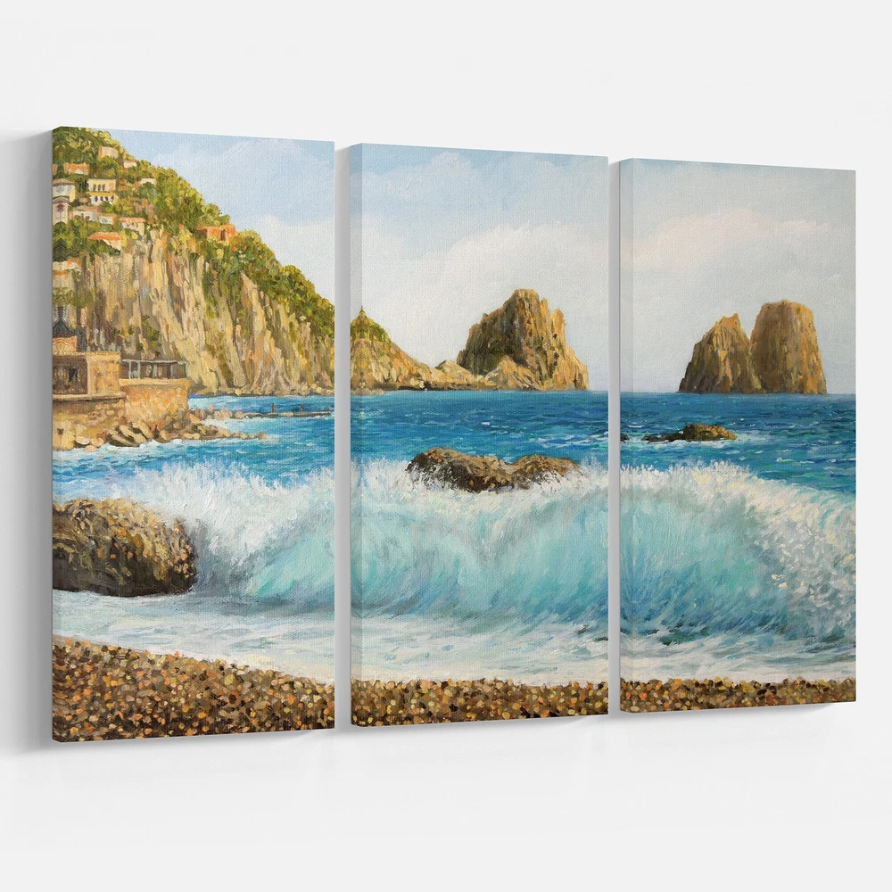 This beautiful Sea & Shore Canvas Art is printed using the highest quality fade resistant ink on canvas. Every one of our fine art giclee canvas prints is printed on premium quality cotton canvas, using the finest quality inks which will not fade over time. Each giclee print is stretched tightly over a 1 inch wood sub frame ensuring the canvas is taught and does not buckle. This canvas art print is gallery-wrapped (the design continues on the sides) , giving it a real art gallery feel. All of our canvas prints are carefully packaged with plastic protection, fragile labeling and sturdy boxes to ensure a safe delivery. Every canvas print arrives ready to hang on the wall, with the hanging kits included.- Style : Nautical & Coastal- Subject : Sea & Shore, Nautical- Color : Blue- This canvas Free Shipping Over $49.99* Details Designart "Faraglioni on Island Capri" Seascape Canvas Art Print - 36x28 - 3 Product Description: This beautiful Sea & Shore Canvas Art is printed using the highest quality fade resistant ink on canvas. Every one of our fine art giclee canvas prints is printed on premium quality cotton canvas, using the finest quality inks which will not fade over time. Each giclee print is stretched tightly over a 1 inch wood sub frame ensuring the canvas is taught and does not buckle. This canvas art print is gallery-wrapped (the design continues on the sides) , giving it a real art gallery feel. All of our canvas prints are carefully packaged with plastic protection, fragile labeling and sturdy boxes to ensure a safe delivery. Every canvas print arrives ready to hang on the wall, with the hanging kits included. - Style Nautical & Coastal - Subject Sea & Shore, Nautical - Color Blue - This canvas giclee print is gallery-wrapped (the design continues on the sides) , giving it a real art gallery feel. - Premium quality cotton canvas. - Arrives ready to hang on the wall - Easy to Hang