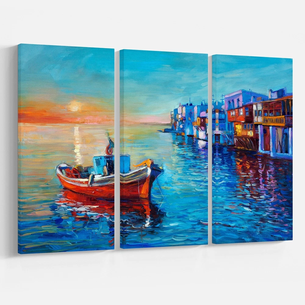 This beautiful Nautical Canvas Art is printed using the highest quality fade resistant ink on canvas. Every one of our fine art giclee canvas prints is printed on premium quality cotton canvas, using the finest quality inks which will not fade over time. Each giclee print is stretched tightly over a 1 inch wood sub frame ensuring the canvas is taught and does not buckle. This canvas art print is gallery-wrapped (the design continues on the sides) , giving it a real art gallery feel. All of our canvas prints are carefully packaged with plastic protection, fragile labeling and sturdy boxes to ensure a safe delivery. Every canvas print arrives ready to hang on the wall, with the hanging kits included.- Style : Nautical & Coastal- Subject : Nautical, Sea & Shore- Color : Blue- This canvas Free Shipping Over $49.99* Details Designart "Fishing Boat in Coastal town" Nautical Print on Wrapped Canvas set - Product Description: This beautiful Nautical Canvas Art is printed using the highest quality fade resistant ink on canvas. Every one of our fine art giclee canvas prints is printed on premium quality cotton canvas, using the finest quality inks which will not fade over time. Each giclee print is stretched tightly over a 1 inch wood sub frame ensuring the canvas is taught and does not buckle. This canvas art print is gallery-wrapped (the design continues on the sides) , giving it a real art gallery feel. All of our canvas prints are carefully packaged with plastic protection, fragile labeling and sturdy boxes to ensure a safe delivery. Every canvas print arrives ready to hang on the wall, with the hanging kits included. - Style Nautical & Coastal - Subject Nautical, Sea & Shore - Color Blue - This canvas giclee print is gallery-wrapped (the design continues on the sides) , giving it a real art gallery feel. - Premium quality cotton canvas. - Arrives ready to hang on the wall - Easy to Hang