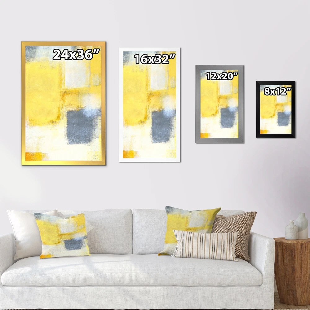This beautiful Grey Meets Yellow Modern Art XVI Framed wall Art is printed using the highest quality fade resistant ink on canvas. Every one of our Framed Giclee Prints is printed on premium quality canvas, using the finest quality inks which will not fade over time and then mounted and framed on a 1.5 inch wide frame.This framed art print is available in many different color frames. All of our framed art prints are carefully packaged with corner protectors, fragile labeling, and sturdy boxes to ensure a safe delivery. Every framed art arrives ready to hang on the wall, with the hanging kit included.Features:- Style : Modern & Contemporary- Subject : Abstract, Abstract & Fractals- Color : Yellow- Premium quality cotton canvas mounted.- Available in several frame colors. - Arrives with Free Shipping Over $49.99* Details Designart "Grey Meets Yellow Modern Art XVI" Modern Framed Wall Decor Product Description: This beautiful Grey Meets Yellow Modern Art XVI Framed wall Art is printed using the highest quality fade resistant ink on canvas. Every one of our Framed Giclee Prints is printed on premium quality canvas, using the finest quality inks which will not fade over time and then mounted and framed on a 1.5 inch wide frame. This framed art print is available in many different color frames. All of our framed art prints are carefully packaged with corner protectors, fragile labeling, and sturdy boxes to ensure a safe delivery. Every framed art arrives ready to hang on the wall, with the hanging kit included. Features: - Style Modern & Contemporary - Subject Abstract, Abstract & Fractals - Color Yellow - Premium quality cotton canvas mounted. - Available in several frame colors. - Arrives with instructions and hanging kit