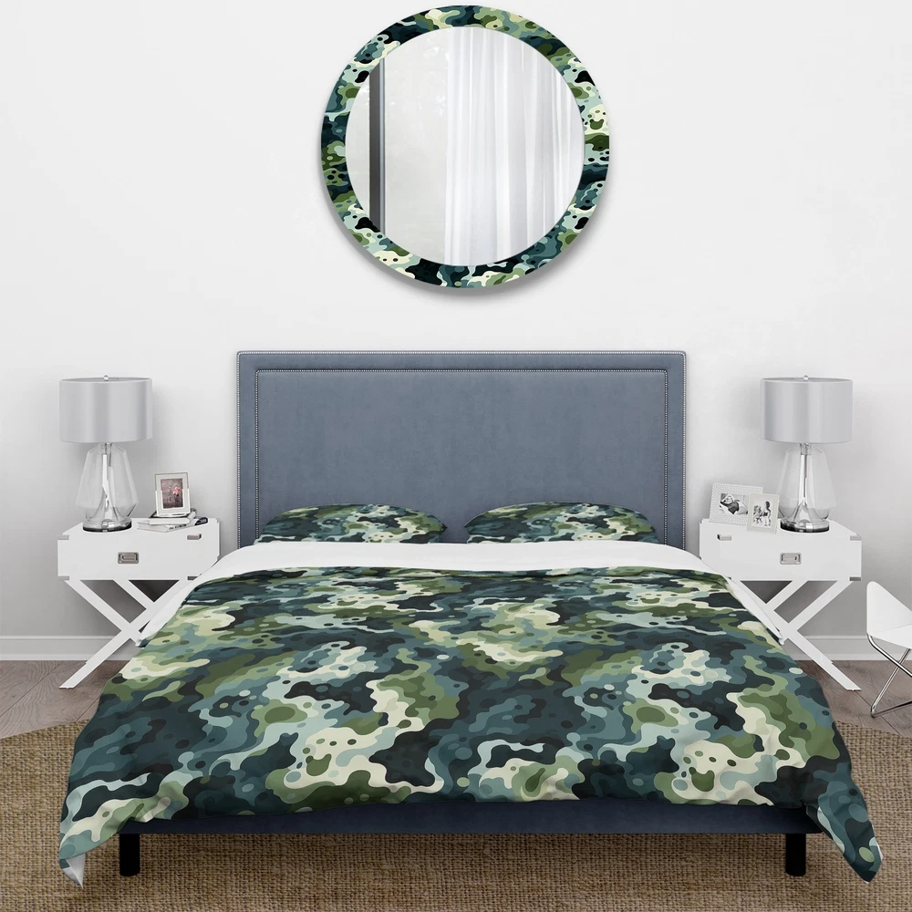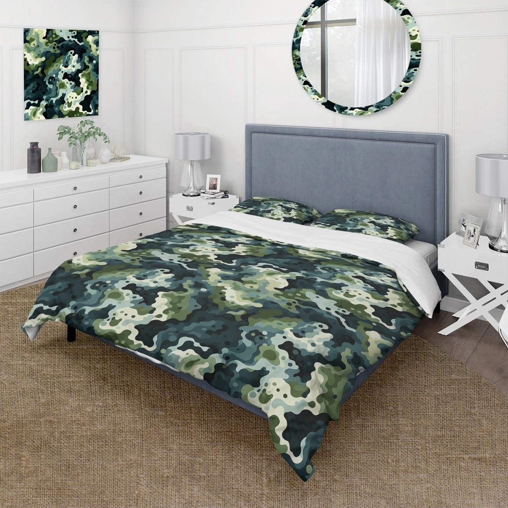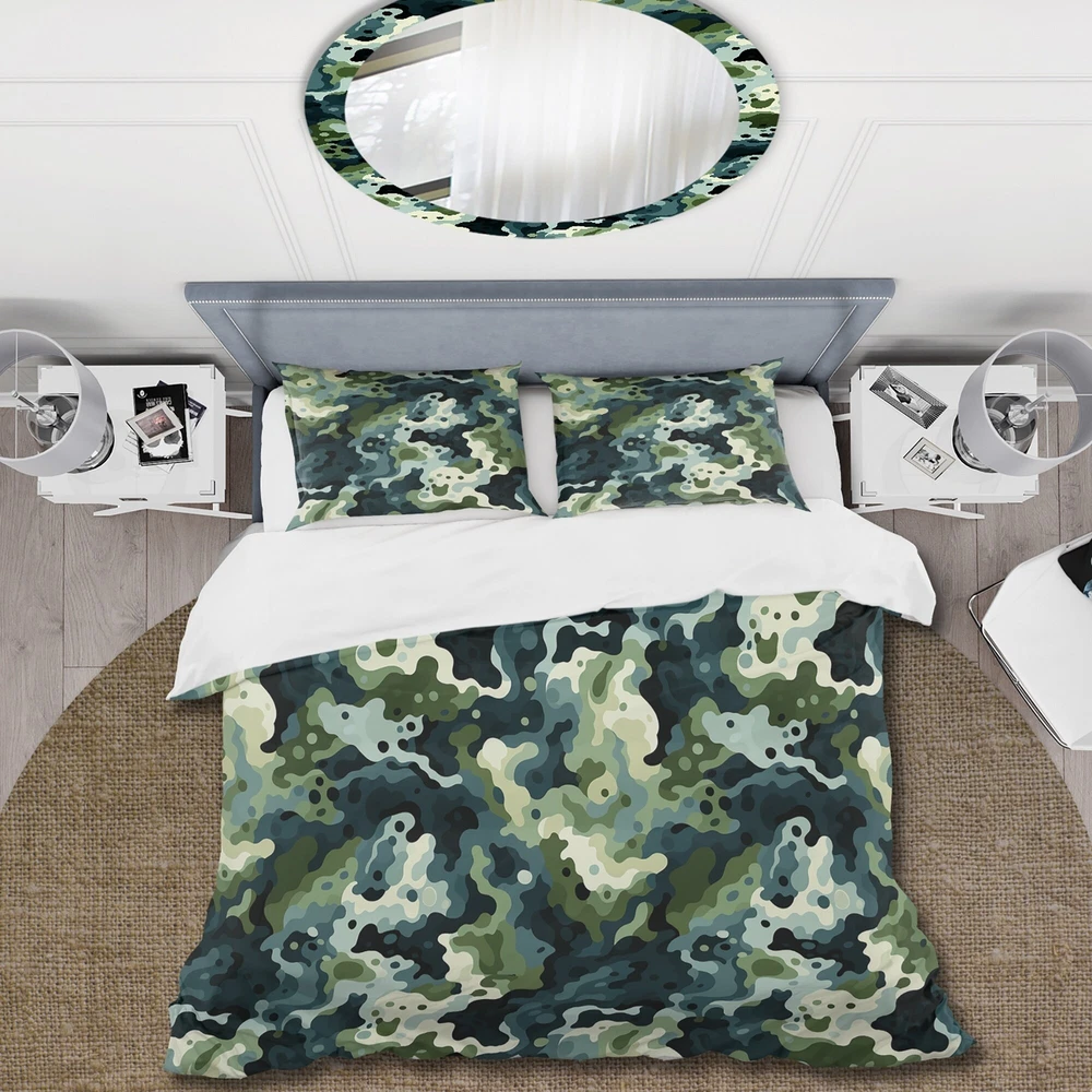 There is just nothing better than a beautiful, inviting comfortable bed after a long day. This Camouflage bed set is created using the richest colors stemming from high density Italian ink and the softest fabrics making it the perfect way to spruce up your bedroom, while keeping it ultra-comfortable. This luxurious Lush Camouflage Jungle I bed design is made with 100% microfiber polyester, making it ultra-soft to ensure you sleep comfortably all night long. This Modern & Contemporary set includes 1 Bed Cover and 2 Shams and is available in twin, queen and king sizes.This Bedding Set is easily integrated into your already decorated space.What's Included? - Duvet Cover - Shams - Pillow Cases not included but can be buy separately - Comforter Insert NOT INCLUDEDFeatures - Free Shipping Over $49.99* Details Designart "Lush Camouflage Jungle I" Modern Bedding Covert Cet With 2 Shams Product Description: There is just nothing better than a beautiful, inviting comfortable bed after a long day. This Camouflage bed set is created using the richest colors stemming from high density Italian ink and the softest fabrics making it the perfect way to spruce up your bedroom, while keeping it ultra-comfortable. This luxurious Lush Camouflage Jungle I bed design is made with 100% microfiber polyester, making it ultra-soft to ensure you sleep comfortably all night long. This Modern & Contemporary set includes 1 Bed Cover and 2 Shams and is available in twin, queen and king sizes. This Bedding Set is easily integrated into your already decorated space. What's Included? - Duvet Cover - Shams - Pillow Cases not included but can be buy separately - Comforter Insert NOT INCLUDED Features - Printed using High Density Italian Ink making the colors extra vibrant. - Made from ultra-soft, lightweight 100% microfiber polyester. Wrinkle resistant fabric. Down-like comfort, odorless. - The Modern & Contemporary bed set includes one bed cover and two standard pillow shams to create a complete and stylish look. - The elegant and soft colors are both trendy and fun to brighten and update your bedroom. - Made in Canada - Decorative Wall Art and throw pillows to match this set are available but sold separately. - Actual comforter inserts and pillow inserts are not included. This set includes the two pillow shams and comforter cover only. King Dimensions: - 1 Duvet Cover104 inches wide x 88 inches long - 2 King Shams20 inches wide x 36 inches long Queen Dimensions: - 1 Duvet Cover88 inches wide x 88 inches long - 2 Standard Shams16 inches wide x 26 inches long Twin Dimensions: - 1 Duvet Cover68 inches wide x 88 inches long - 1 Standard Sham16 inches wide x 26 inches long Product Details - MaterialPolyester. - PatternCamouflage - ColorGreen - StyleModern & Contemporary - ReversibleNo Directions: Fabric Care InstructionsMachine wash on cold gentle cycle. Wash separately on first wash. Use only non- chlorine bleach when needed. Tumble dry low. Remove promptly.
