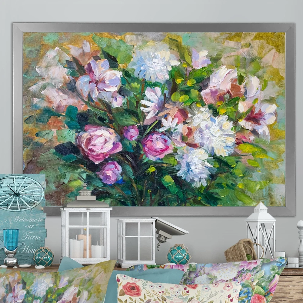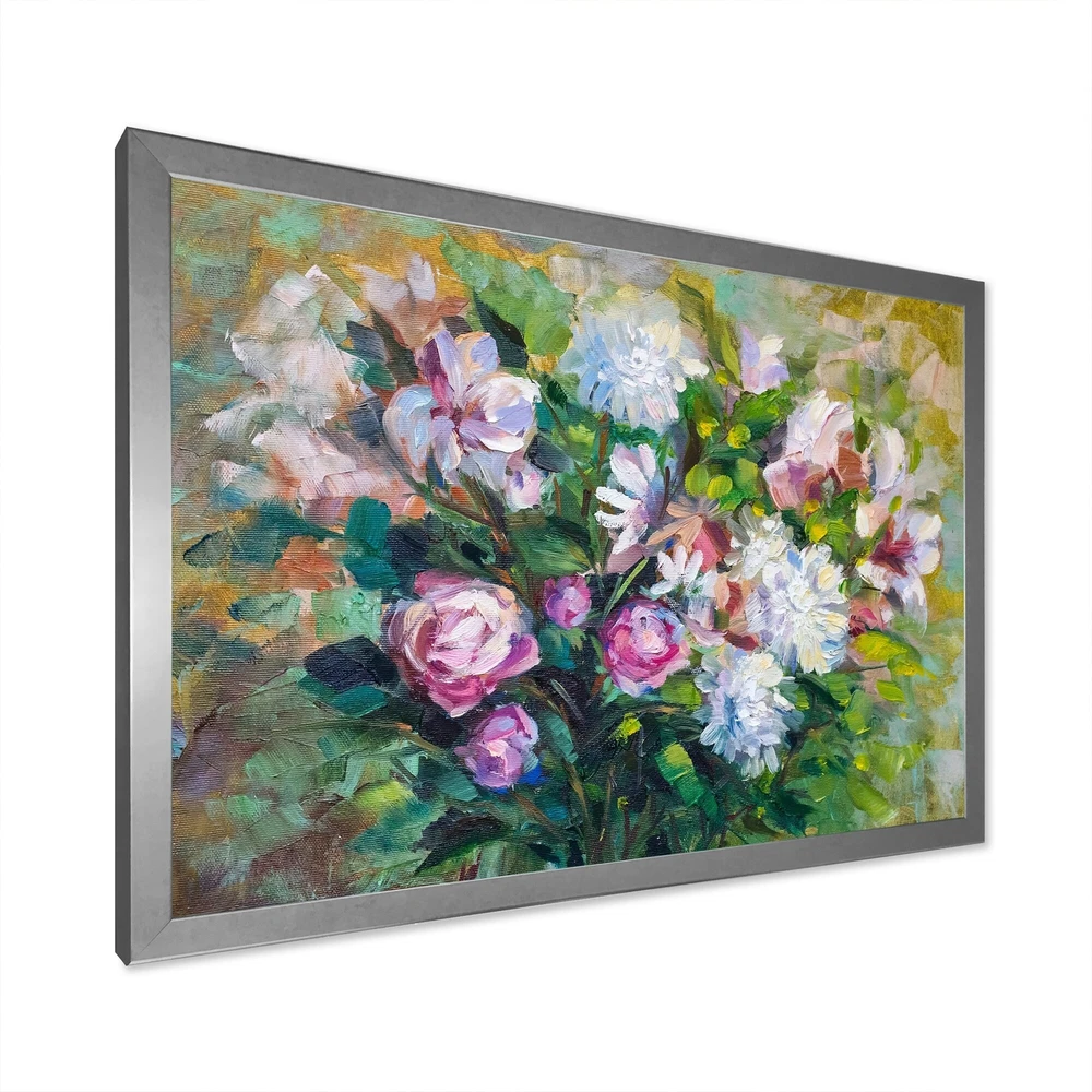 This beautiful Painting Still Life Framed wall Art is printed using the highest quality fade resistant ink on canvas. Every one of our Framed Giclee Prints is printed on premium quality canvas, using the finest quality inks which will not fade over time and then mounted and framed on a 1.5 inch wide frame.This framed art print is available in many different color frames. All of our framed art prints are carefully packaged with corner protectors, fragile labeling, and sturdy boxes to ensure a safe delivery. Every framed art arrives ready to hang on the wall, with the hanging kit included.Features:- Style : Traditional- Subject : Floral, Floral & Botanical, Roses- Color : Multi-Color- Premium quality cotton canvas mounted.- Available in several frame colors. - Arrives with instructions and Free Shipping Over $49.99* Details Designart "Painting Still Life" Traditional Framed Wall Art Product Description: This beautiful Painting Still Life Framed wall Art is printed using the highest quality fade resistant ink on canvas. Every one of our Framed Giclee Prints is printed on premium quality canvas, using the finest quality inks which will not fade over time and then mounted and framed on a 1.5 inch wide frame. This framed art print is available in many different color frames. All of our framed art prints are carefully packaged with corner protectors, fragile labeling, and sturdy boxes to ensure a safe delivery. Every framed art arrives ready to hang on the wall, with the hanging kit included. Features: - Style Traditional - Subject Floral, Floral & Botanical, Roses - Color Multi-Color - Premium quality cotton canvas mounted. - Available in several frame colors. - Arrives with instructions and hanging kit