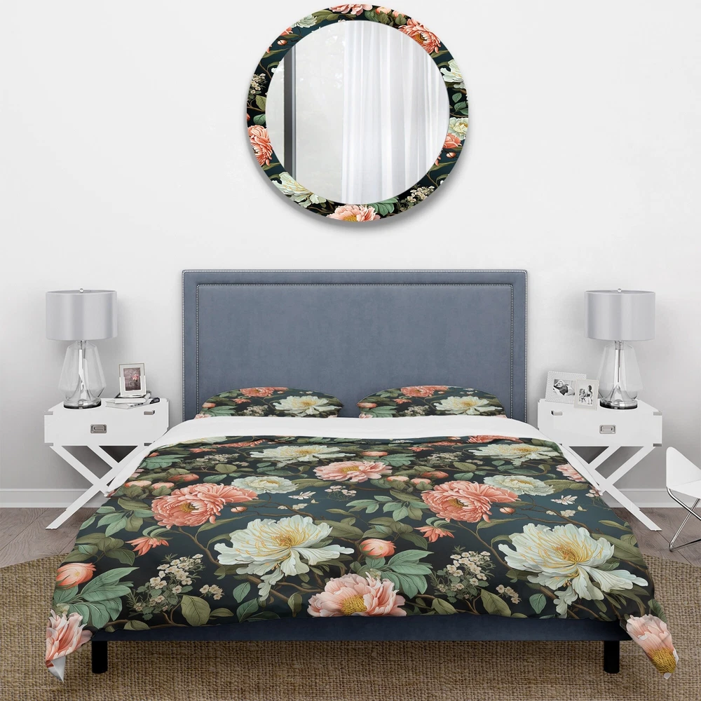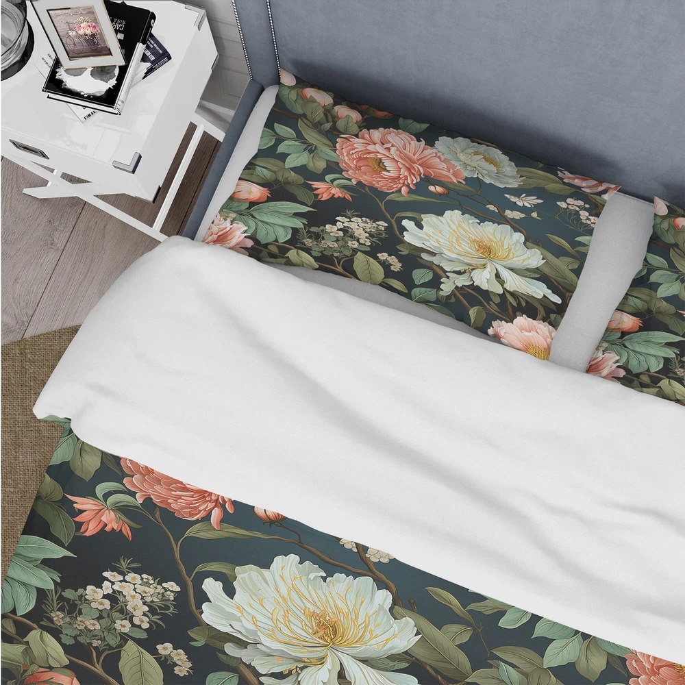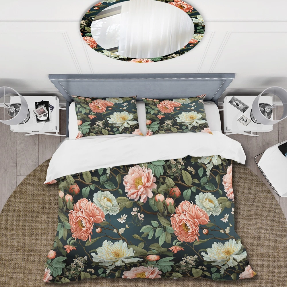 There is just nothing better than a beautiful, inviting comfortable bed after a long day. This Floral bed set is created using the richest colors stemming from high density Italian ink and the softest fabrics making it the perfect way to spruce up your bedroom, while keeping it ultra-comfortable. This luxurious Pink And Green Shades Garden Delight bed design is made with 100% microfiber polyester, making it ultra-soft to ensure you sleep comfortably all night long. This Cottage set includes 1 Bed Cover and 2 Shams and is available in twin, queen and king sizes.This Bedding Set is easily integrated into your already decorated space.What's Included? - Duvet Cover - Shams - Pillow Cases not included but can be buy separately - Comforter Insert NOT INCLUDEDFeatures - Free Shipping Over $49.99* Details Designart "Pink And Green Shades Garden Delight " Green Cottage Bedding Set With Product Description: There is just nothing better than a beautiful, inviting comfortable bed after a long day. This Floral bed set is created using the richest colors stemming from high density Italian ink and the softest fabrics making it the perfect way to spruce up your bedroom, while keeping it ultra-comfortable. This luxurious Pink And Green Shades Garden Delight bed design is made with 100% microfiber polyester, making it ultra-soft to ensure you sleep comfortably all night long. This Cottage set includes 1 Bed Cover and 2 Shams and is available in twin, queen and king sizes. This Bedding Set is easily integrated into your already decorated space. What's Included? - Duvet Cover - Shams - Pillow Cases not included but can be buy separately - Comforter Insert NOT INCLUDED Features - Printed using High Density Italian Ink making the colors extra vibrant. - Made from ultra-soft, lightweight 100% microfiber polyester. Wrinkle resistant fabric. Down-like comfort, odorless. - The Cottage bed set includes one bed cover and two standard pillow shams to create a complete and stylish look. - The elegant and soft colors are both trendy and fun to brighten and update your bedroom. - Made in Canada - Decorative Wall Art and throw pillows to match this set are available but sold separately. - Actual comforter inserts and pillow inserts are not included. This set includes the two pillow shams and comforter cover only. King Dimensions: - 1 Duvet Cover104 inches wide x 88 inches long - 2 King Shams20 inches wide x 36 inches long Queen Dimensions: - 1 Duvet Cover88 inches wide x 88 inches long - 2 Standard Shams16 inches wide x 26 inches long Twin Dimensions: - 1 Duvet Cover68 inches wide x 88 inches long - 1 Standard Sham16 inches wide x 26 inches long Product Details - MaterialPolyester. - PatternFloral - ColorPink; Green - StyleCottage; traditional - ReversibleNo Directions: Fabric Care InstructionsMachine wash on cold gentle cycle. Wash separately on first wash. Use only non- chlorine bleach when needed. Tumble dry low. Remove promptly.