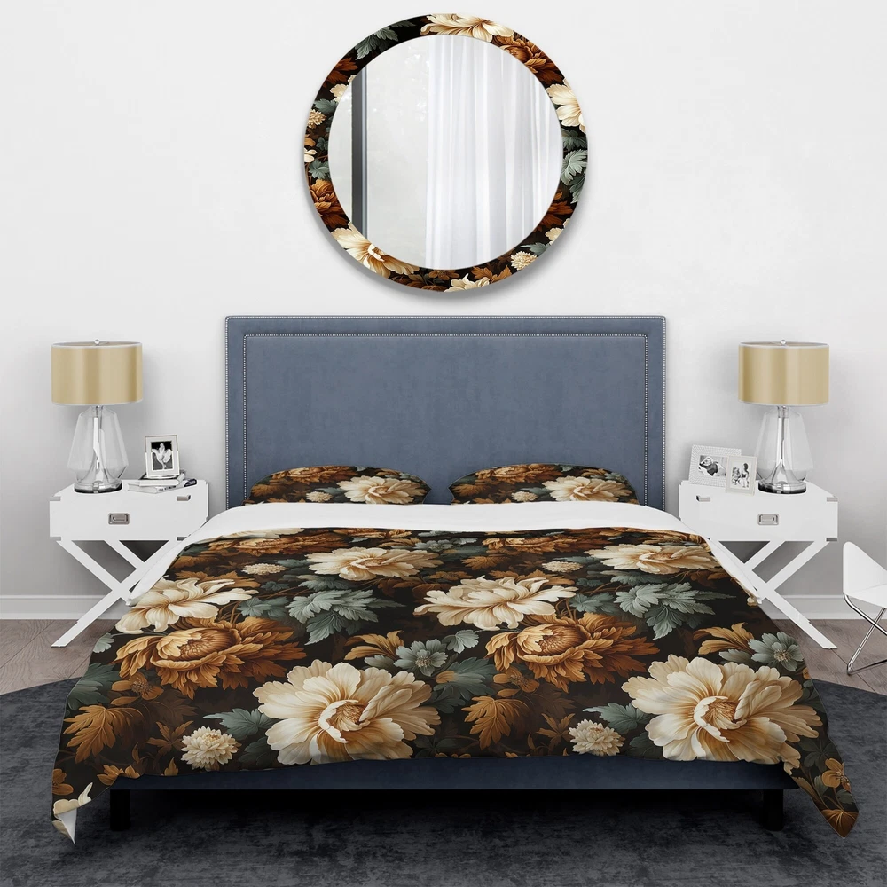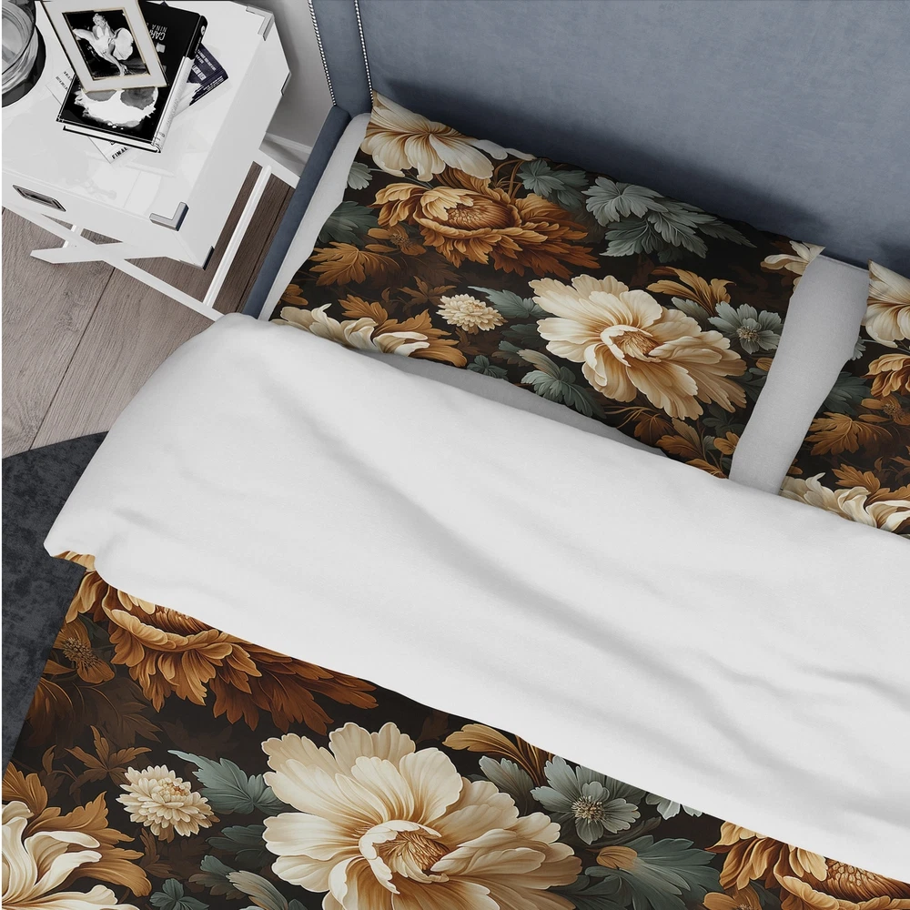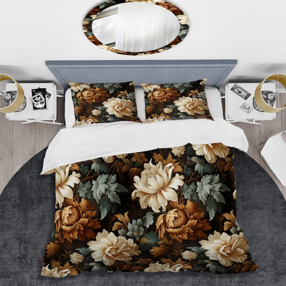 There is just nothing better than a beautiful, inviting comfortable bed after a long day. This Floral bed set is created using the richest colors stemming from high density Italian ink and the softest fabrics making it the perfect way to spruce up your bedroom, while keeping it ultra-comfortable. This luxurious Rustic Brocade Elegance Victorian Pattern IV bed design is made with 100% microfiber polyester, making it ultra-soft to ensure you sleep comfortably all night long. This Cottage set includes 1 Bed Cover and 2 Shams and is available in twin, queen and king sizes.This Bedding Set is easily integrated into your already decorated space.What's Included? - Duvet Cover - Shams - Pillow Cases not included but can be buy separately - Comforter Insert NOT INCLUDEDFeatures - Free Shipping Over $49.99* Details Designart "Rustic Brocade Elegance Victorian Pattern IV" Cottage Bedding Cover Product Description: There is just nothing better than a beautiful, inviting comfortable bed after a long day. This Floral bed set is created using the richest colors stemming from high density Italian ink and the softest fabrics making it the perfect way to spruce up your bedroom, while keeping it ultra-comfortable. This luxurious Rustic Brocade Elegance Victorian Pattern IV bed design is made with 100% microfiber polyester, making it ultra-soft to ensure you sleep comfortably all night long. This Cottage set includes 1 Bed Cover and 2 Shams and is available in twin, queen and king sizes. This Bedding Set is easily integrated into your already decorated space. What's Included? - Duvet Cover - Shams - Pillow Cases not included but can be buy separately - Comforter Insert NOT INCLUDED Features - Printed using High Density Italian Ink making the colors extra vibrant. - Made from ultra-soft, lightweight 100% microfiber polyester. Wrinkle resistant fabric. Down-like comfort, odorless. - The Cottage bed set includes one bed cover and two standard pillow shams to create a complete and stylish look. - The elegant and soft colors are both trendy and fun to brighten and update your bedroom. - Made in Canada - Decorative Wall Art and throw pillows to match this set are available but sold separately. - Actual comforter inserts and pillow inserts are not included. This set includes the two pillow shams and comforter cover only. King Dimensions: - 1 Duvet Cover104 inches wide x 88 inches long - 2 King Shams20 inches wide x 36 inches long Queen Dimensions: - 1 Duvet Cover88 inches wide x 88 inches long - 2 Standard Shams16 inches wide x 26 inches long Twin Dimensions: - 1 Duvet Cover68 inches wide x 88 inches long - 1 Standard Sham16 inches wide x 26 inches long Product Details - MaterialPolyester. - PatternFloral - ColorBrown - StyleCottage; traditional - ReversibleNo Directions: Fabric Care InstructionsMachine wash on cold gentle cycle. Wash separately on first wash. Use only non- chlorine bleach when needed. Tumble dry low. Remove promptly.