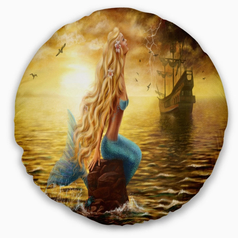Decorative Throw Pillows for Couch Bed Sofa with Zip CoversAn easy, fun way to add a pop of color or bring new life to any room in your home or office is with these beautiful Sea & Shore throw pillows. Dress up your bed, sofa or lounger with this decorative design art pillows. Perfect as Beach bedroom décor, lounge décor Coastal living room décor. It adds a fun accent to any room. Throw pillows really do work wonders: they can transform any room from uninviting discomfort to warm and welcoming. And they really do go almost anywhere - arrange a couple on the couch or sofa, place one in your overstuffed chair for extra coziness, toss a couple on the bed and prop yourself up for a great read.These Sea & Shore pillow is printed using High Color Density Italian inks to create a vibrantly Free Shipping Over $49.99* Details Designart 'Sea Mermaid with Ghost Ship' Seascape Throw Pillow Product Description: Decorative Throw Pillows for Couch Bed Sofa with Zip Covers An easy, fun way to add a pop of color or bring new life to any room in your home or office is with these beautiful Sea & Shore throw pillows. Dress up your bed, sofa or lounger with this decorative design art pillows. Perfect as Beach bedroom décor, lounge décor Coastal living room décor. It adds a fun accent to any room. Throw pillows really do work wondersthey can transform any room from uninviting discomfort to warm and welcoming. And they really do go almost anywhere - arrange a couple on the couch or sofa, place one in your overstuffed chair for extra coziness, toss a couple on the bed and prop yourself up for a great read. These Sea & Shore pillow is printed using High Color Density Italian inks to create a vibrantly colored, sharp artwork. Features: Perfect accent to any furniture piece Basic shapes with a modern graphic design twist Printed on ultra smooth and 100% light weight polyester Cushion filled with 100% polyester fill Wrinkle resistant fabric Zip Closure so you can remove the pillow from its' cover Down-like comfort - Odorless 100% Hypoallergenic Machine Wash Cold Separately, Gently Cycle Only, No bleach, hang to dry Print on Demand with High Density Italian Ink Available in Several sizes Attribute :Beach, Coastal, Tropical Subject Sea & Shore, Nautical, Landscapes