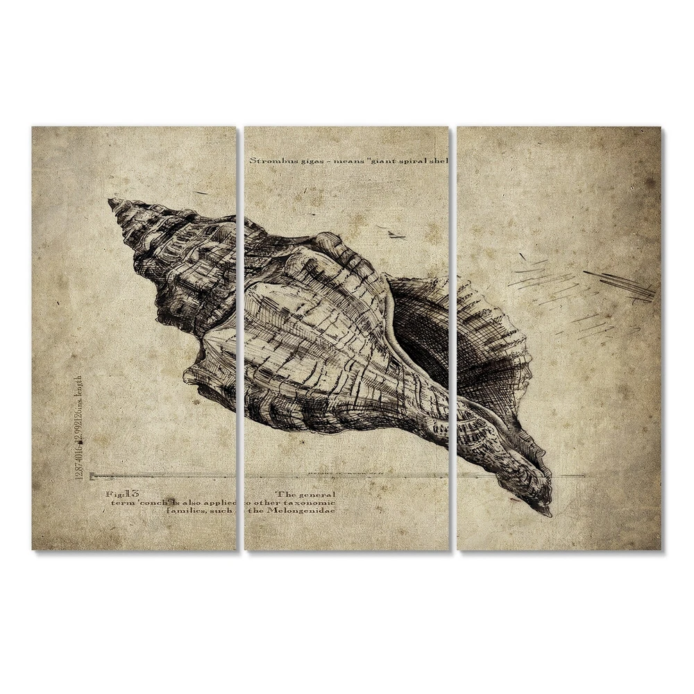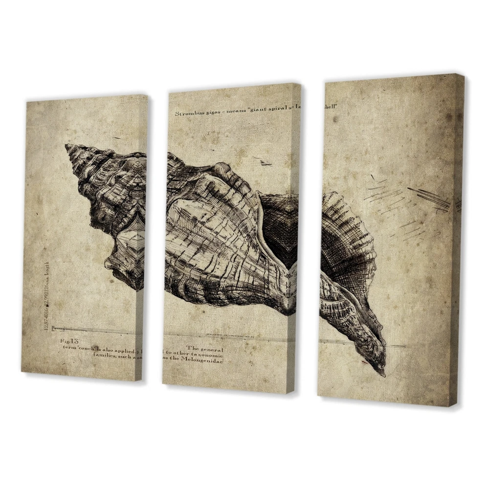 This beautiful Multipanel Sea Shell Old Style Sketch II Canvas Art is printed using the highest quality fade resistant ink on canvas. Every one of our fine art giclee canvas prints is printed on premium quality cotton canvas, using the finest quality inks which will not fade over time. Each giclee print is stretched tightly over a 1 inch wood sub frame for small size prints ensuring the canvas is taught and does not buckle. This canvas art print is gallery-wrapped (the design continues on the sides) , giving it a real art gallery feel. All of our canvas prints are carefully packaged with plastic protection, fragile labeling and sturdy boxes to ensure a safe delivery. Every canvas print arrives ready to hang on the wall, with the hanging kits included.- Style : Nautical & Coastal- Subject : Free Shipping Over $49.99* Details Designart "Sea Shell Old Style Sketch II" Nautical & Coastal Canvas Artwork Product Description: This beautiful Multipanel Sea Shell Old Style Sketch II Canvas Art is printed using the highest quality fade resistant ink on canvas. Every one of our fine art giclee canvas prints is printed on premium quality cotton canvas, using the finest quality inks which will not fade over time. Each giclee print is stretched tightly over a 1 inch wood sub frame for small size prints ensuring the canvas is taught and does not buckle. This canvas art print is gallery-wrapped (the design continues on the sides) , giving it a real art gallery feel. All of our canvas prints are carefully packaged with plastic protection, fragile labeling and sturdy boxes to ensure a safe delivery. Every canvas print arrives ready to hang on the wall, with the hanging kits included. - Style Nautical & Coastal - Subject Animals, Country Charm - Color Brown - This canvas giclee print is gallery-wrapped (the design continues on the sides) , giving it a real art gallery feel. - Premium quality cotton canvas. - Arrives ready to hang on the wall - Easy to Hang