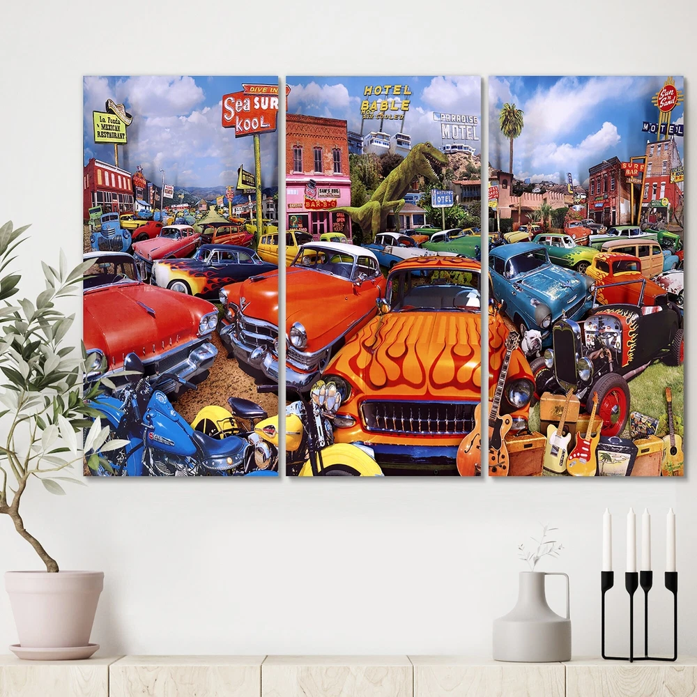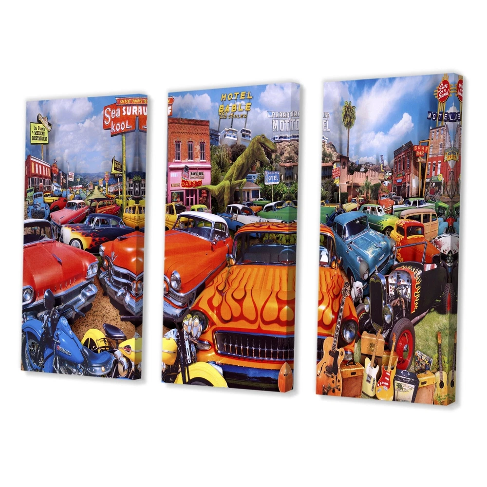 This beautiful Multipanel Sea Surf Drive Inn Canvas Art is printed using the highest quality fade resistant ink on canvas. Every one of our fine art giclee canvas prints is printed on premium quality cotton canvas, using the finest quality inks which will not fade over time. Each giclee print is stretched tightly over a 1 inch wood sub frame for small size prints ensuring the canvas is taught and does not buckle. This canvas art print is gallery-wrapped (the design continues on the sides) , giving it a real art gallery feel. All of our canvas prints are carefully packaged with plastic protection, fragile labeling and sturdy boxes to ensure a safe delivery. Every canvas print arrives ready to hang on the wall, with the hanging kits included.- Style : Modern & Contemporary- Subject : Free Shipping Over $49.99* Details Designart "Sea Surf Drive Inn" Modern Canvas Artwork Print - 36x28 - 3 Panels Product Description: This beautiful Multipanel Sea Surf Drive Inn Canvas Art is printed using the highest quality fade resistant ink on canvas. Every one of our fine art giclee canvas prints is printed on premium quality cotton canvas, using the finest quality inks which will not fade over time. Each giclee print is stretched tightly over a 1 inch wood sub frame for small size prints ensuring the canvas is taught and does not buckle. This canvas art print is gallery-wrapped (the design continues on the sides) , giving it a real art gallery feel. All of our canvas prints are carefully packaged with plastic protection, fragile labeling and sturdy boxes to ensure a safe delivery. Every canvas print arrives ready to hang on the wall, with the hanging kits included. - Style Modern & Contemporary - Subject Abstract, - Color Purple - This canvas giclee print is gallery-wrapped (the design continues on the sides) , giving it a real art gallery feel. - Premium quality cotton canvas. - Arrives ready to hang on the wall - Easy to Hang