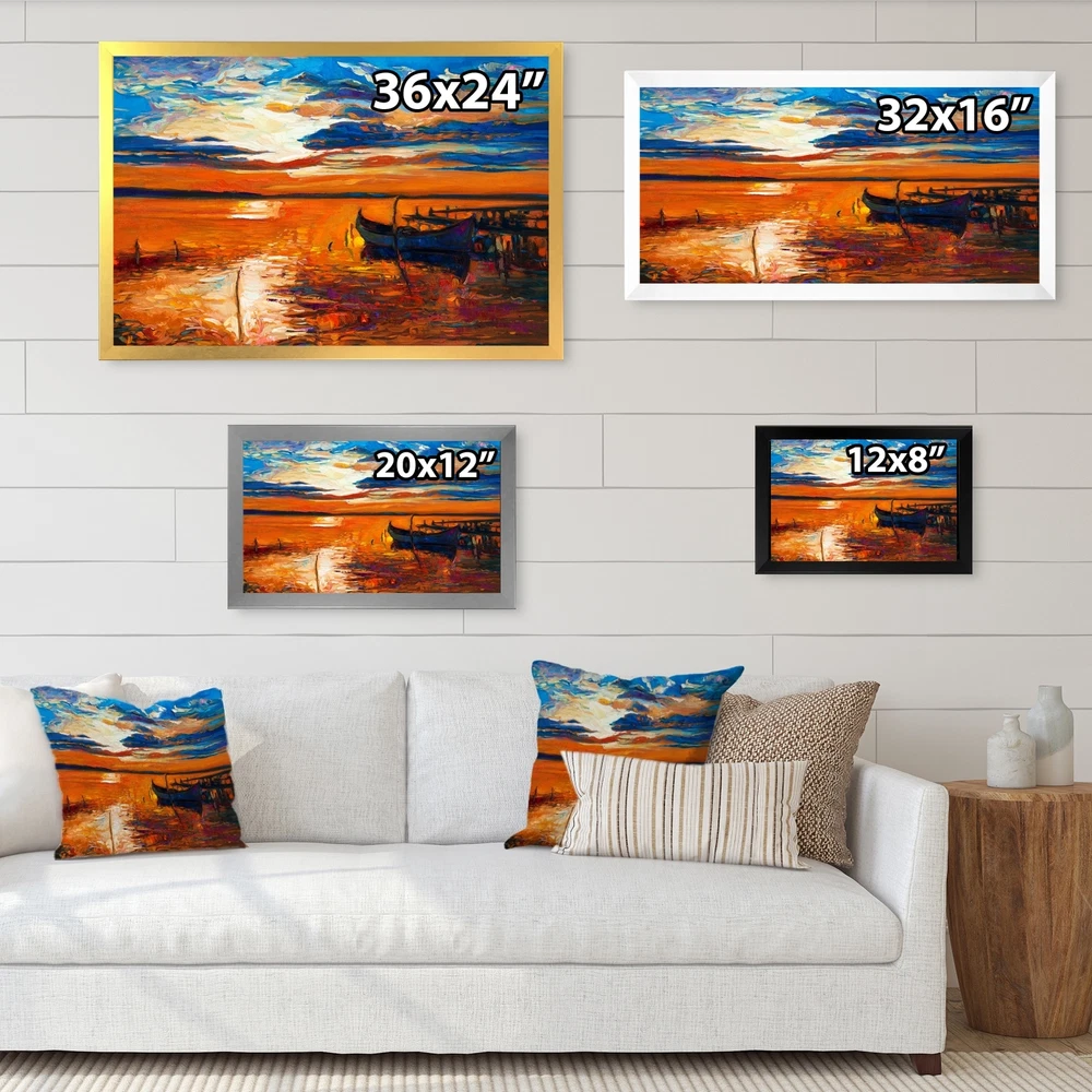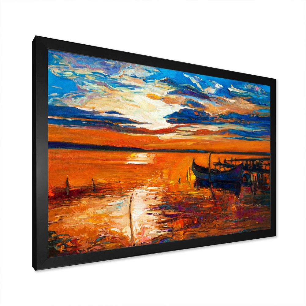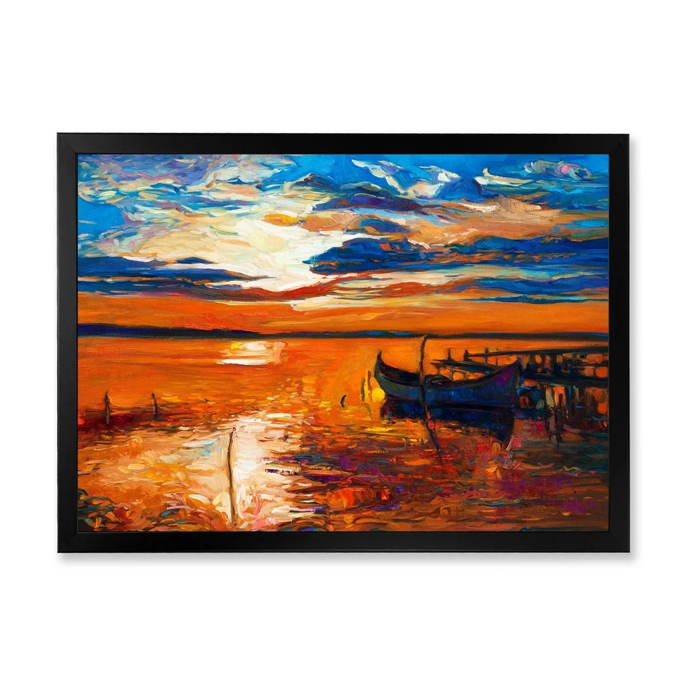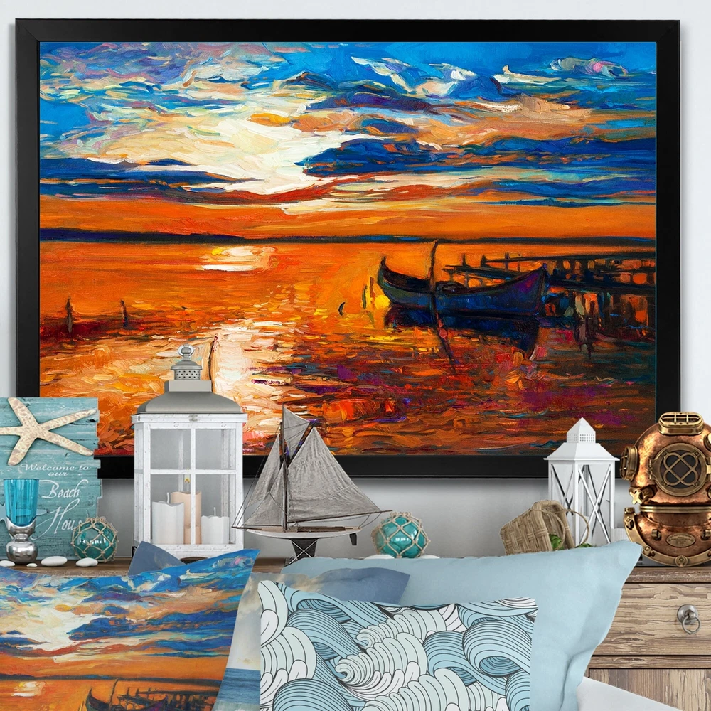 This beautiful Single Fishing Boat At Blue Sea Framed wall Art is printed using the highest quality fade resistant ink on canvas. Every one of our Framed Giclee Prints is printed on premium quality canvas, using the finest quality inks which will not fade over time and then mounted and framed on a 1.5 inch wide frame.This framed art print is available in many different color frames. All of our framed art prints are carefully packaged with corner protectors, fragile labeling, and sturdy boxes to ensure a safe delivery. Every framed art arrives ready to hang on the wall, with the hanging kit included.Features:- Style : Nautical & Coastal- Subject : Transportation, Nautical & Beach, Beach & Ocean- Color : Orange- Premium quality cotton canvas mounted.- Available in several frame colors. - Free Shipping Over $49.99* Details Designart "Single Fishing Boat At Blue Sea" Nautical & Coastal Framed artwork Product Description: This beautiful Single Fishing Boat At Blue Sea Framed wall Art is printed using the highest quality fade resistant ink on canvas. Every one of our Framed Giclee Prints is printed on premium quality canvas, using the finest quality inks which will not fade over time and then mounted and framed on a 1.5 inch wide frame. This framed art print is available in many different color frames. All of our framed art prints are carefully packaged with corner protectors, fragile labeling, and sturdy boxes to ensure a safe delivery. Every framed art arrives ready to hang on the wall, with the hanging kit included. Features: - Style Nautical & Coastal - Subject Transportation, Nautical & Beach, Beach & Ocean - Color Orange - Premium quality cotton canvas mounted. - Available in several frame colors. - Arrives with instructions and hanging kit
