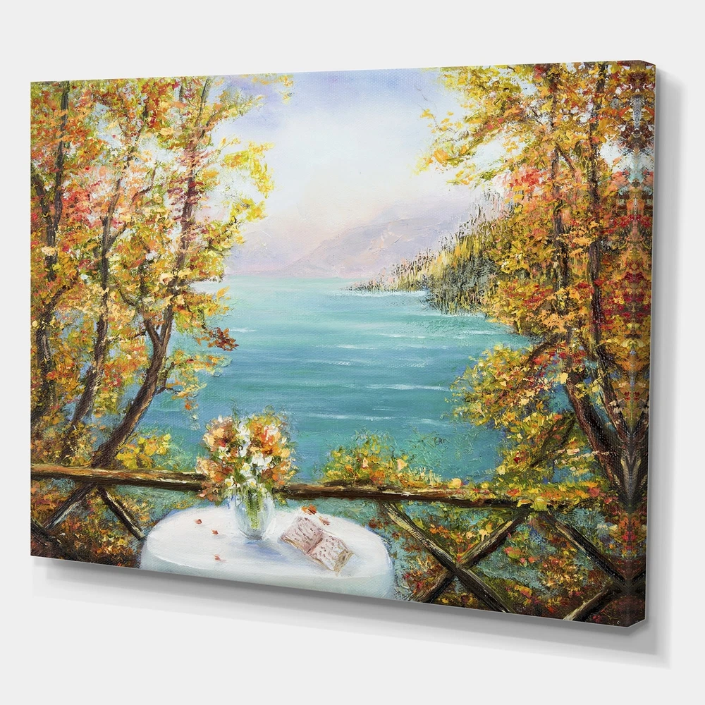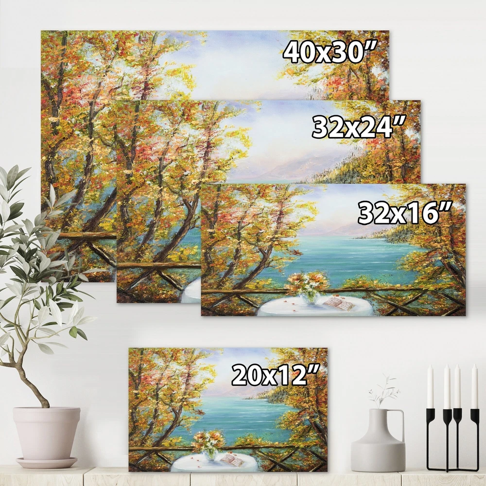 This beautiful Nautical & Coastal Canvas Art is printed using the highest quality fade resistant ink on canvas. Every one of our fine art giclee canvas prints is printed on premium quality cotton canvas, using the finest quality inks which will not fade over time. Each giclee print is stretched tightly over a 1 inch wood sub frame for small size prints or a 1.5 inch wood sub frame for large size prints (40x30 36x36 ...) ensuring the canvas is taught and does not buckle. This canvas art print is gallery-wrapped (the design continues on the sides) , giving it a real art gallery feel. All of our canvas prints are carefully packaged with plastic protection, fragile labeling and sturdy boxes to ensure a safe delivery. Every canvas print arrives ready to hang on the wall, with the hanging kits Free Shipping Over $49.99* Details Designart "Terrace VIew By The Blue Ocean" Nautical & Coastal Canvas Wall Art Product Description: This beautiful Nautical & Coastal Canvas Art is printed using the highest quality fade resistant ink on canvas. Every one of our fine art giclee canvas prints is printed on premium quality cotton canvas, using the finest quality inks which will not fade over time. Each giclee print is stretched tightly over a 1 inch wood sub frame for small size prints or a 1.5 inch wood sub frame for large size prints (40x30 36x36 ...) ensuring the canvas is taught and does not buckle. This canvas art print is gallery-wrapped (the design continues on the sides) , giving it a real art gallery feel. All of our canvas prints are carefully packaged with plastic protection, fragile labeling and sturdy boxes to ensure a safe delivery. Every canvas print arrives ready to hang on the wall, with the hanging kits included. - Style Nautical & Coastal,Tropical - Subject Beach, Landscapes - Color Blue, - This canvas giclee print is gallery-wrapped (the design continues on the sides) , giving it a real art gallery feel. - Premium quality cotton canvas. - Arrives ready to hang on the wall - Easy to Hang