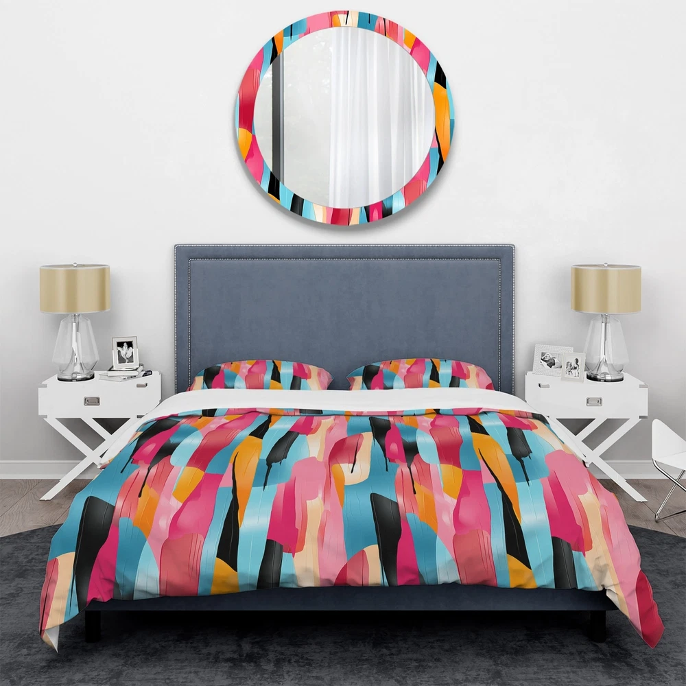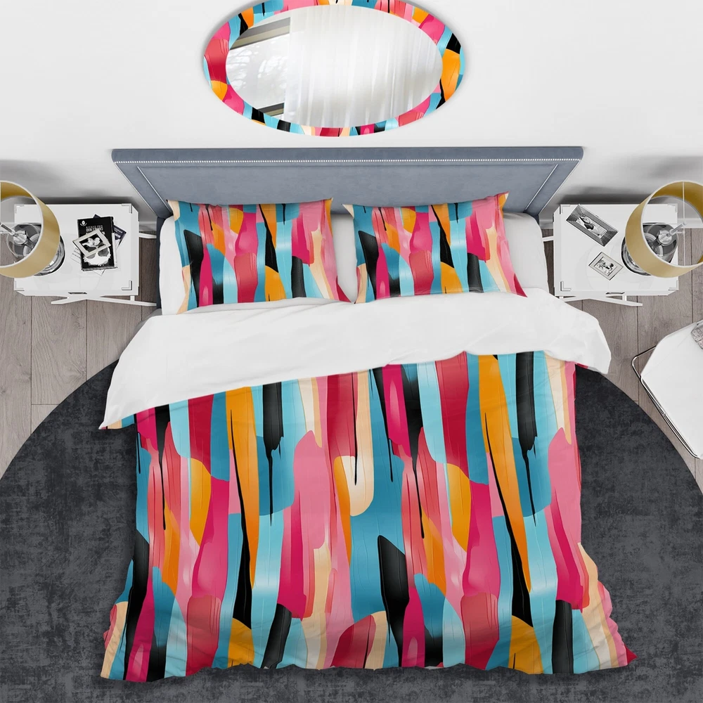 There is just nothing better than a beautiful, inviting comfortable bed after a long day. This Striped, Abstract bed set is created using the richest colors stemming from high density Italian ink and the softest fabrics making it the perfect way to spruce up your bedroom, while keeping it ultra-comfortable. This luxurious Vibrant Serenity Blue And Pink Lines Pattern II bed design is made with 100% microfiber polyester, making it ultra-soft to ensure you sleep comfortably all night long. This Modern & Contemporary set includes 1 Bed Cover and 2 Shams and is available in twin, queen and king sizes.This Bedding Set is easily integrated into your already decorated space.What's Included? - Duvet Cover - Shams - Pillow Cases not included but can be buy separately - Comforter Free Shipping Over $49.99* Details Designart "Vibrant Serenity Blue And Pink Lines Pattern II" Pink Modern Bed Product Description: There is just nothing better than a beautiful, inviting comfortable bed after a long day. This Striped, Abstract bed set is created using the richest colors stemming from high density Italian ink and the softest fabrics making it the perfect way to spruce up your bedroom, while keeping it ultra-comfortable. This luxurious Vibrant Serenity Blue And Pink Lines Pattern II bed design is made with 100% microfiber polyester, making it ultra-soft to ensure you sleep comfortably all night long. This Modern & Contemporary set includes 1 Bed Cover and 2 Shams and is available in twin, queen and king sizes. This Bedding Set is easily integrated into your already decorated space. What's Included? - Duvet Cover - Shams - Pillow Cases not included but can be buy separately - Comforter Insert NOT INCLUDED Features - Printed using High Density Italian Ink making the colors extra vibrant. - Made from ultra-soft, lightweight 100% microfiber polyester. Wrinkle resistant fabric. Down-like comfort, odorless. - The Modern & Contemporary bed set includes one bed cover and two standard pillow shams to create a complete and stylish look. - The elegant and soft colors are both trendy and fun to brighten and update your bedroom. - Made in Canada - Decorative Wall Art and throw pillows to match this set are available but sold separately. - Actual comforter inserts and pillow inserts are not included. This set includes the two pillow shams and comforter cover only. King Dimensions: - 1 Duvet Cover104 inches wide x 88 inches long - 2 King Shams20 inches wide x 36 inches long Queen Dimensions: - 1 Duvet Cover88 inches wide x 88 inches long - 2 Standard Shams16 inches wide x 26 inches long Twin Dimensions: - 1 Duvet Cover68 inches wide x 88 inches long - 1 Standard Sham16 inches wide x 26 inches long Product Details - MaterialPolyester. - PatternStriped; Abstract - ColorBlue; Pink - StyleModern & Contemporary - ReversibleNo Directions: Fabric Care InstructionsMachine wash on cold gentle cycle. Wash separately on first wash. Use only non- chlorine bleach when needed. Tumble dry low. Remove promptly.