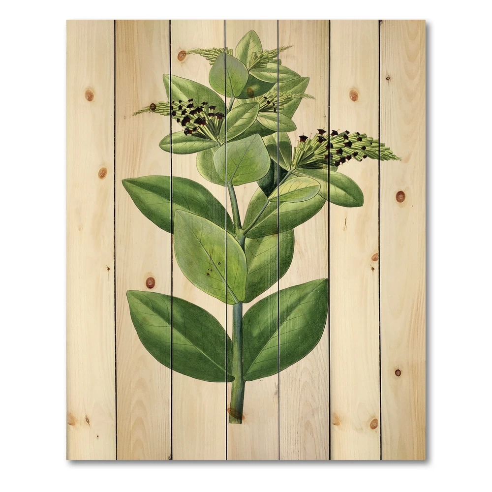 Alas, a modern take on wood wall art. Once typically a wall art piece found only in rustic or farmhouse style decor settings, this Floral wood wall art will easily fit into even the most contemporary of designs.Using the highest quality 6 Color Canon UV Ink, this Traditional wood wall art incorporates several aspects of fine design into one stunning piece. With its slightly visible wood grain appearing through the colors and sleekly finished edges, it is a wonderful choice for any room in your home or office, being it a traditional or modern space. As each piece of wood has natural grain differences from the next, each of these wood wall arts is a truly unique addition to your space.Each Wood wall art is 100% handmade in Canada on Natural pine wood, using the highest quality ink which will Free Shipping Over $49.99* Details Designart 'Vintage Green Leaves Plants VI' Traditional Print on Natural Pine Product Description: Alas, a modern take on wood wall art. Once typically a wall art piece found only in rustic or farmhouse style decor settings, this Floral wood wall art will easily fit into even the most contemporary of designs. Using the highest quality 6 Color Canon UV Ink, this Traditional wood wall art incorporates several aspects of fine design into one stunning piece. With its slightly visible wood grain appearing through the colors and sleekly finished edges, it is a wonderful choice for any room in your home or office, being it a traditional or modern space. As each piece of wood has natural grain differences from the next, each of these wood wall arts is a truly unique addition to your space. Each Wood wall art is 100% handmade in Canada on Natural pine wood, using the highest quality ink which will not fade over time. Available in Differents sizes - OrientationVertical - SubjectFloral TypeWood Wall Art, Fine Art, Wood Fine Art, Print on Plaque - Arrives ready to hang on the wall with hanging kit included - MaterialMade with 100% natural pine wood - StyleTraditional - Number of Pieces1 - ColorGreen