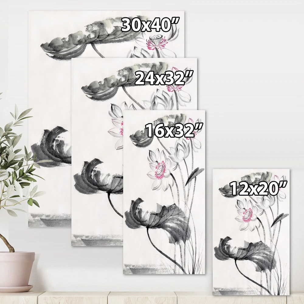 This beautiful Traditional Canvas Art is printed using the highest quality fade resistant ink on canvas. Every one of our fine art giclee canvas prints is printed on premium quality cotton canvas, using the finest quality inks which will not fade over time. Each giclee print is stretched tightly over a 1 inch wood sub frame for small size prints or a 1.5 inch wood sub frame for large size prints (40x30 36x36 ...) ensuring the canvas is taught and does not buckle. This canvas art print is gallery-wrapped (the design continues on the sides) , giving it a real art gallery feel. All of our canvas prints are carefully packaged with plastic protection, fragile labeling and sturdy boxes to ensure a safe delivery. Every canvas print arrives ready to hang on the wall, with the hanging kits Free Shipping Over $49.99* Details Designart "Vintage Lotus Flowers" Traditional Canvas Wall Art Print Product Description: This beautiful Traditional Canvas Art is printed using the highest quality fade resistant ink on canvas. Every one of our fine art giclee canvas prints is printed on premium quality cotton canvas, using the finest quality inks which will not fade over time. Each giclee print is stretched tightly over a 1 inch wood sub frame for small size prints or a 1.5 inch wood sub frame for large size prints (40x30 36x36 ...) ensuring the canvas is taught and does not buckle. This canvas art print is gallery-wrapped (the design continues on the sides) , giving it a real art gallery feel. All of our canvas prints are carefully packaged with plastic protection, fragile labeling and sturdy boxes to ensure a safe delivery. Every canvas print arrives ready to hang on the wall, with the hanging kits included. - Style Traditional,Traditional - Subject Floral, Photography - Color Grey, - This canvas giclee print is gallery-wrapped (the design continues on the sides) , giving it a real art gallery feel. - Premium quality cotton canvas. - Arrives ready to hang on the wall - Easy to Hang