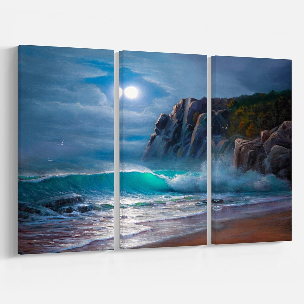 This beautiful Sea & Shore Canvas Art is printed using the highest quality fade resistant ink on canvas. Every one of our fine art giclee canvas prints is printed on premium quality cotton canvas, using the finest quality inks which will not fade over time. Each giclee print is stretched tightly over a 1 inch wood sub frame ensuring the canvas is taught and does not buckle. This canvas art print is gallery-wrapped (the design continues on the sides) , giving it a real art gallery feel. All of our canvas prints are carefully packaged with plastic protection, fragile labeling and sturdy boxes to ensure a safe delivery. Every canvas print arrives ready to hang on the wall, with the hanging kits included.- Style : Nautical & Coastal- Subject : Sea & Shore, Nautical- Color : Blue- This canvas Free Shipping Over $49.99* Details Designart "Wave of sea at the Full moon" Landscapes Sea & Shore Photographic on Product Description: This beautiful Sea & Shore Canvas Art is printed using the highest quality fade resistant ink on canvas. Every one of our fine art giclee canvas prints is printed on premium quality cotton canvas, using the finest quality inks which will not fade over time. Each giclee print is stretched tightly over a 1 inch wood sub frame ensuring the canvas is taught and does not buckle. This canvas art print is gallery-wrapped (the design continues on the sides) , giving it a real art gallery feel. All of our canvas prints are carefully packaged with plastic protection, fragile labeling and sturdy boxes to ensure a safe delivery. Every canvas print arrives ready to hang on the wall, with the hanging kits included. - Style Nautical & Coastal - Subject Sea & Shore, Nautical - Color Blue - This canvas giclee print is gallery-wrapped (the design continues on the sides) , giving it a real art gallery feel. - Premium quality cotton canvas. - Arrives ready to hang on the wall - Easy to Hang