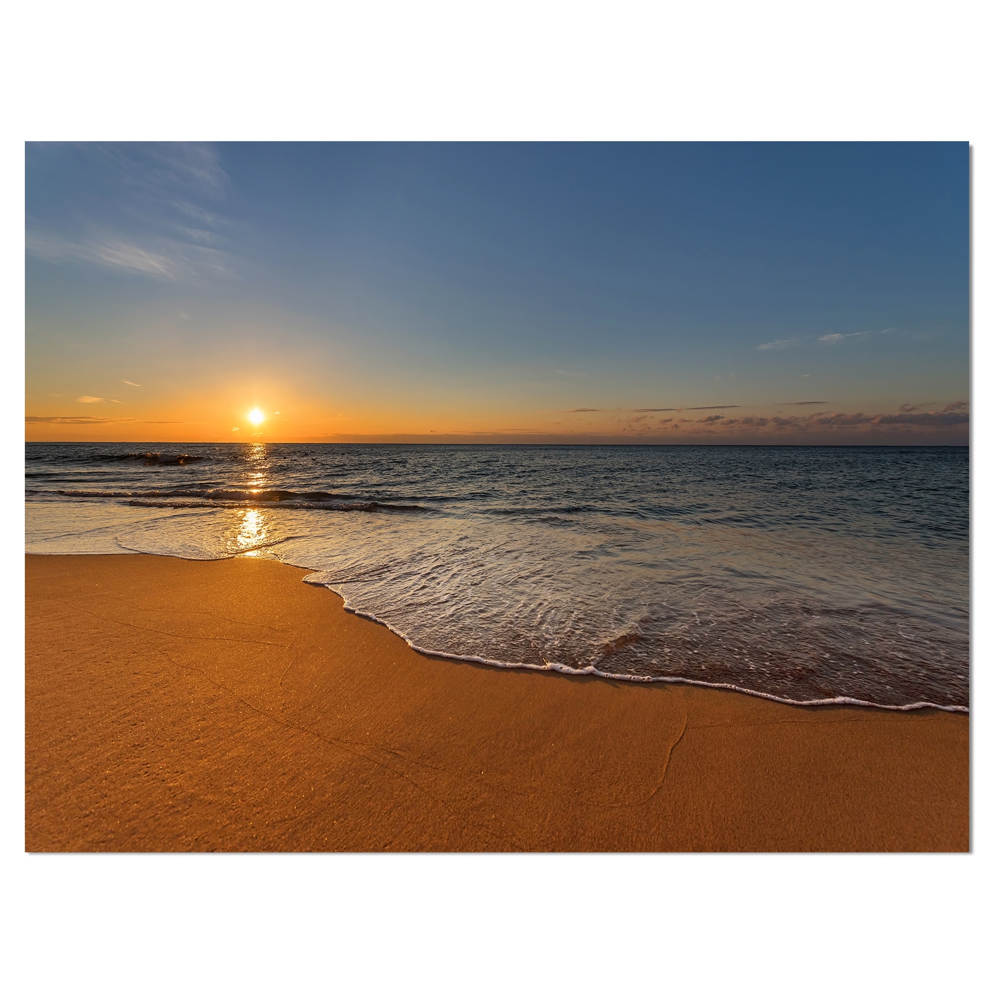 This beautiful art is printed using the highest quality fade resistant ink on canvas. Every one of our fine art giclee canvas prints is printed on premium quality cotton canvas, using the finest quality inks which will not fade over time. Each giclee print is stretched tightly over a 1 inch wood sub frame ensuring the canvas is taught and does not buckle. This canvas giclee print is gallery-wrapped (the design continues on the sides) , giving it a real art gallery feel. Premium quality cotton canvas. Arrives ready to hang on the wall Easy to Hang Free Shipping Over $49.99* Details Designart "West Cost Sunset Over the Sea" Landscapes Sea & Shore Photographic on Product Description: This beautiful art is printed using the highest quality fade resistant ink on canvas. Every one of our fine art giclee canvas prints is printed on premium quality cotton canvas, using the finest quality inks which will not fade over time. Each giclee print is stretched tightly over a 1 inch wood sub frame ensuring the canvas is taught and does not buckle. This canvas giclee print is gallery-wrapped (the design continues on the sides) , giving it a real art gallery feel. Premium quality cotton canvas. Arrives ready to hang on the wall Easy to Hang