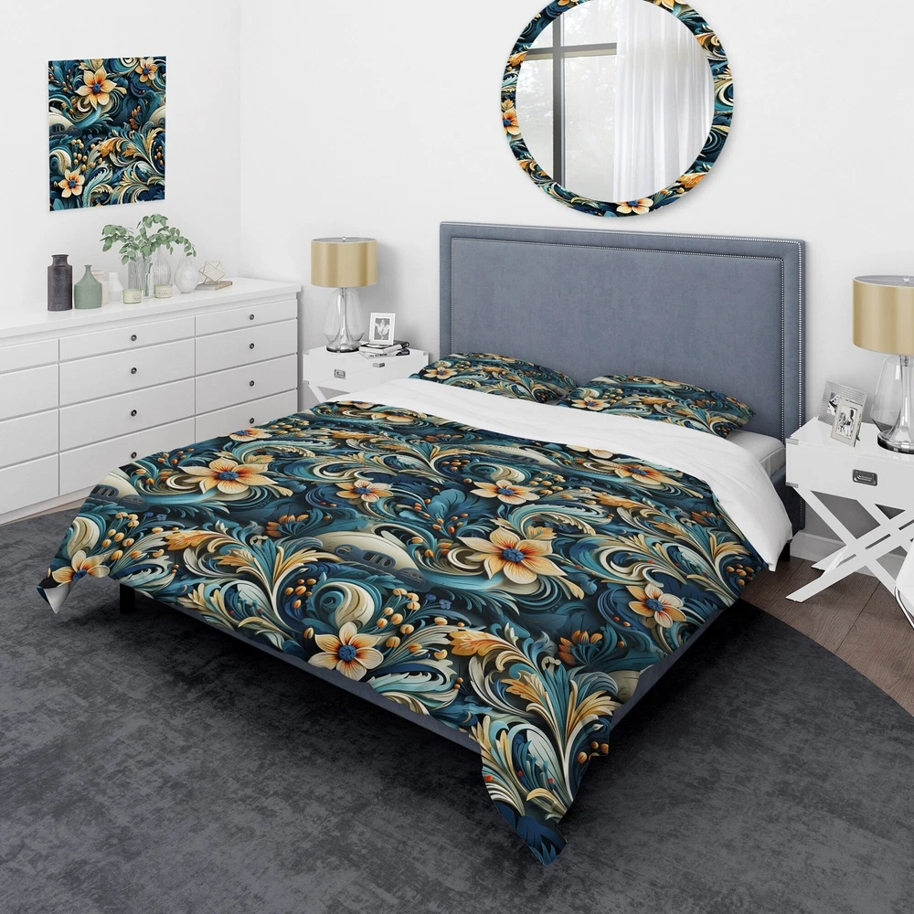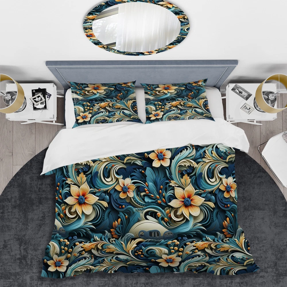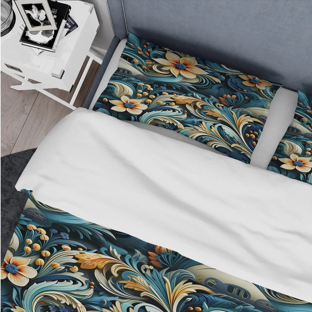 There is just nothing better than a beautiful, inviting comfortable bed after a long day. This Floral bed set is created using the richest colors stemming from high density Italian ink and the softest fabrics making it the perfect way to spruce up your bedroom, while keeping it ultra-comfortable. This luxurious Yellow Springtime Floral Symphony Ballet bed design is made with 100% microfiber polyester, making it ultra-soft to ensure you sleep comfortably all night long. This Cottage set includes 1 Bed Cover and 2 Shams and is available in twin, queen and king sizes.This Bedding Set is easily integrated into your already decorated space.What's Included? - Duvet Cover - Shams - Pillow Cases not included but can be buy separately - Comforter Insert NOT INCLUDEDFeatures - Free Shipping Over $49.99* Details Designart "Yellow Springtime Floral Symphony Ballet" Teal Cottage Bedding Set Product Description: There is just nothing better than a beautiful, inviting comfortable bed after a long day. This Floral bed set is created using the richest colors stemming from high density Italian ink and the softest fabrics making it the perfect way to spruce up your bedroom, while keeping it ultra-comfortable. This luxurious Yellow Springtime Floral Symphony Ballet bed design is made with 100% microfiber polyester, making it ultra-soft to ensure you sleep comfortably all night long. This Cottage set includes 1 Bed Cover and 2 Shams and is available in twin, queen and king sizes. This Bedding Set is easily integrated into your already decorated space. What's Included? - Duvet Cover - Shams - Pillow Cases not included but can be buy separately - Comforter Insert NOT INCLUDED Features - Printed using High Density Italian Ink making the colors extra vibrant. - Made from ultra-soft, lightweight 100% microfiber polyester. Wrinkle resistant fabric. Down-like comfort, odorless. - The Cottage bed set includes one bed cover and two standard pillow shams to create a complete and stylish look. - The elegant and soft colors are both trendy and fun to brighten and update your bedroom. - Made in Canada - Decorative Wall Art and throw pillows to match this set are available but sold separately. - Actual comforter inserts and pillow inserts are not included. This set includes the two pillow shams and comforter cover only. King Dimensions: - 1 Duvet Cover104 inches wide x 88 inches long - 2 King Shams20 inches wide x 36 inches long Queen Dimensions: - 1 Duvet Cover88 inches wide x 88 inches long - 2 Standard Shams16 inches wide x 26 inches long Twin Dimensions: - 1 Duvet Cover68 inches wide x 88 inches long - 1 Standard Sham16 inches wide x 26 inches long Product Details - MaterialPolyester. - PatternFloral - ColorYellow; Teal - StyleCottage; traditional - ReversibleNo Directions: Fabric Care InstructionsMachine wash on cold gentle cycle. Wash separately on first wash. Use only non- chlorine bleach when needed. Tumble dry low. Remove promptly.