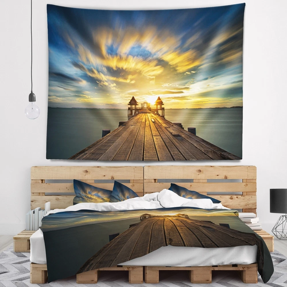 For a quick and easy home or office makeover, our wall tapestries are a great way to add a modern touch of décor and a pop of color to any room in your home or office. This Pier & Bridge wall tapestry is created on light weight, wrinkle resistant, polyester fabric making it very easy to install on any wall.These Coastal wall tapestry is printed using High Color Density Italian inks to create a vibrantly colored, sharp artwork.This beautiful Wooden Bridge under Dramatic Sky wall hanging artwork can also be used as a Bedspread, Bed Cover, Room Décor Tapestry, Beach Throw.This Coastal tapestry will easily change the plainest wall into an art display. This tapestry serves as a beautiful piece of wall art and through our vast selection of designs and such easy hanging, can be changed Free Shipping Over $49.99* Details Designart 'Wooden Bridge under Dramatic Sky' Pier Seascape Wall Tapestry Product Description: For a quick and easy home or office makeover, our wall tapestries are a great way to add a modern touch of décor and a pop of color to any room in your home or office. This Pier & Bridge wall tapestry is created on light weight, wrinkle resistant, polyester fabric making it very easy to install on any wall. These Coastal wall tapestry is printed using High Color Density Italian inks to create a vibrantly colored, sharp artwork. This beautiful Wooden Bridge under Dramatic Sky wall hanging artwork can also be used as a Bedspread, Bed Cover, Room Décor Tapestry, Beach Throw. This Coastal tapestry will easily change the plainest wall into an art display. This tapestry serves as a beautiful piece of wall art and through our vast selection of designs and such easy hanging, can be changed frequently with the seasons or simply your mood. Features Created on 100% lightweight polyester fabric Anti-wrinkle Easy to hang Vibrant rich colors and sharp details Available in multiple sizes and designs Print on Demand with High Density Italian Ink Available in Several sizes Attribute Coastal, Beach, Landscapes Subject Coastal, Sea & Shore, Nautical Care Instructions: - Hand wash or machine wash on gentle cycle.