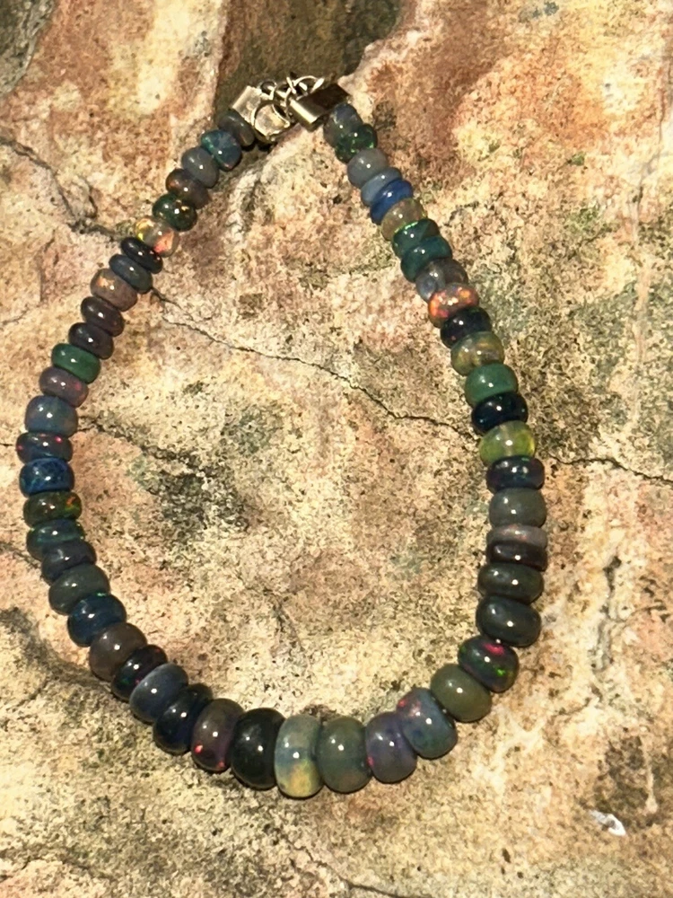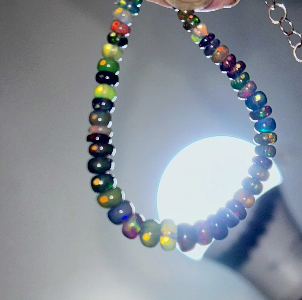 Add a touch of elegance to your jewelry collection with this stunning designer bracelet from Razzle Dazzle. Crafted from 10K and 14K solid gold, this beaded bracelet features a beautiful round Ethiopian opal in a multicolor setting. The bracelet is 8 inches long and can be sized to fit any wrist size. Perfect for all occasions, this bracelet is a must-have accessory to complement any outfit. The excellent cut grade and natural creation of the main stone make this piece a unique addition to your collection. Don't miss out on the opportunity to own this gorgeous bracelet that will make a statement in any setting.