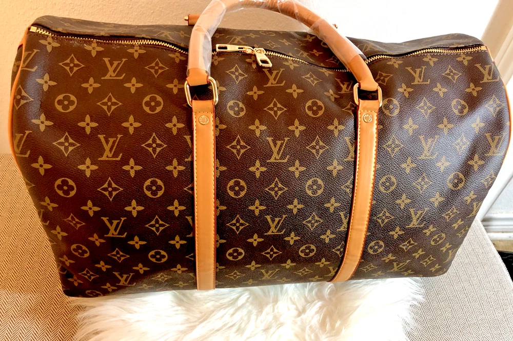 This designer bag is the perfect accessory for any travel occasion. With a spacious interior measuring 10 inches in width, 12 inches in height, and 19.5 inches in depth, it's ideal for storing all your essentials. The bag features a crossbody strap made of faux leather in a tan color, making it easy to carry around. The exterior is made of high-quality faux leather in a rich brown color, giving it a stylish and sophisticated look. The bag is perfect for both casual and travel occasions, and its unisex design makes it suitable for anyone. With a designer theme and a large size, this bag is sure to make a statement wherever you go.