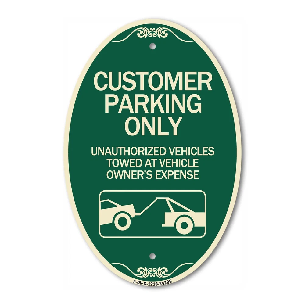 Designer Oval Series Sign - Customer Parking Only Unauthorized Vehicles Towed...