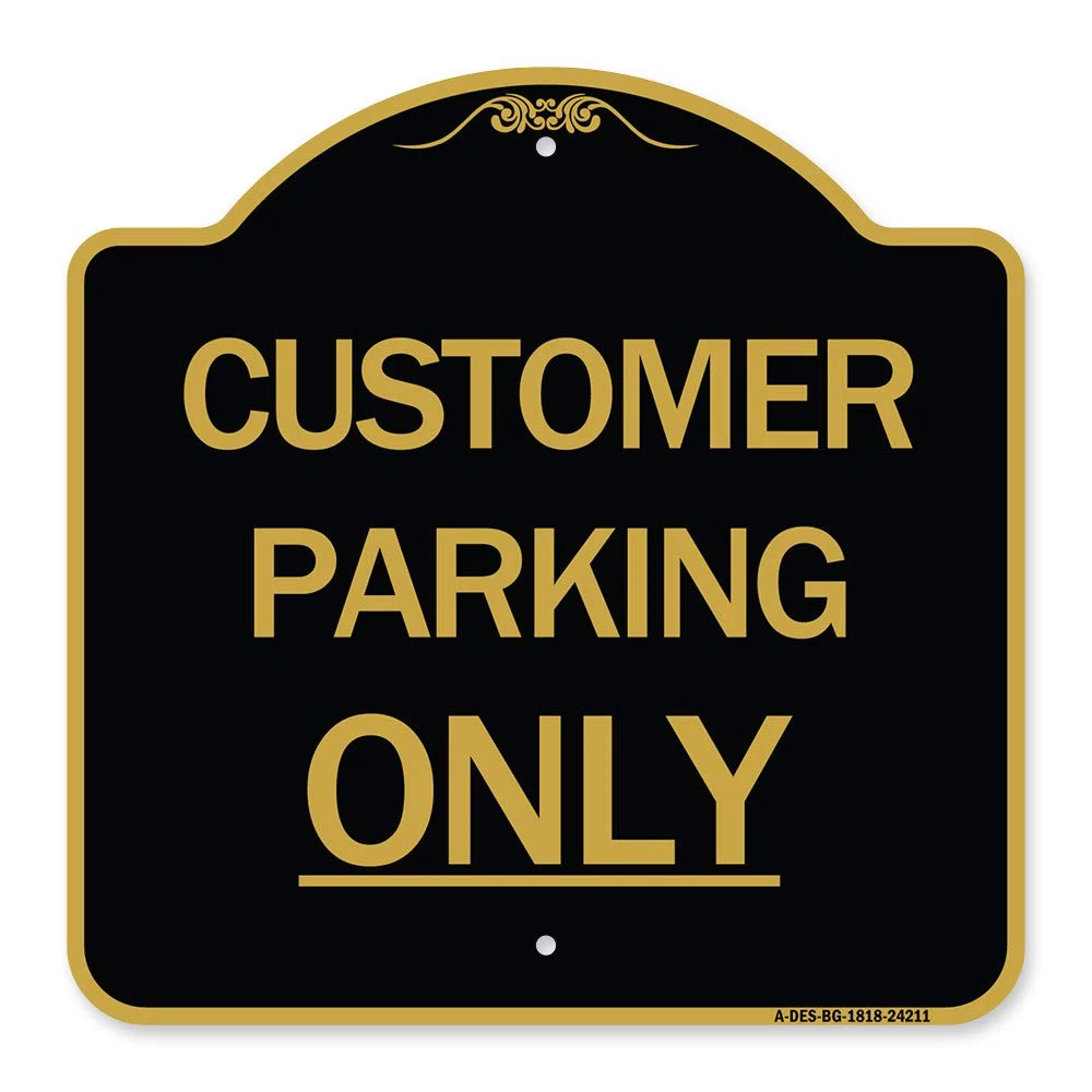Designer Series Sign - Customer Parking Only | Black & Gold 18" X 18" Heavy-G...
