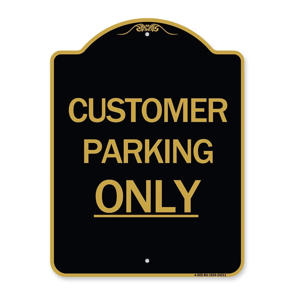 Introducing 's Designer Series Heavy-Gauge Aluminum SignsThis is a 18" x 24" heavy gauge aluminum sign designed for long lasting outdoor use. The sign is manufactured with radius corners and has precut mounting holes for easy installation.Colorful and Durable! Perfect for HOA and Golf Courses!All our signs are in stock are ready to ship immediately. Proudly Manufactured in the U.S.A. by . Our aluminum products are made from commercial corrosive free aluminum specifically for outdoor usage for years of maintenance free life in the harshest environments. Our signs will last as long as your business!EASY TO INSTALLThese signs have pre-punched mounting holes for easy installation. Signs mount to U-channel posts, square or round galvanized posts, wooden posts, all flat surfaces and chain link fences.PROTECT YOUR BUSINESSSigns help protect your business from legal issues and lawsuits while protecting your staff and customers by providing a safe environmentProduct Details:Size: 18" x 24" Black & Gold Heavy-Gauge Aluminum Architectural SignSigns have rounded/burr-free corners for safe handling and use which provide a professional and architectural appealSigns help protect your business from legal issues and lawsuits while protecting your staff and customers by providing a safe environmentEXTREMELY DURABLE: SigmMission Aluminum products are made from commercial corrosive free aluminum EXTREMELY DURABLE: aluminum products are made from commercial corrosive free aluminum specifically for outdoor usage for years of maintenance free life in the harshest environments. Our signs will last as long as your business! EASY TO INSTALL: signs have pre-punched mounting holes for easy installation. Signs mount to U-channel posts, square or round galvanized posts, wooden posts, all flat surfaces and chain link fences. ROUNDED CORNERS: Signs have rounded/burr-free corners for safe handling and use which provide a professional and architectural appeal. PROTECT YOUR BUSINESS: Signs help protect your business from legal issues and lawsuits while protecting your staff and customers by providing a safe environment PROUDLY MADE IN THE U. S. A. : Buy with the confidence and pride that only comes from purchasing a product produced in our state-of-the-art facility in West Palm Beach, Florida