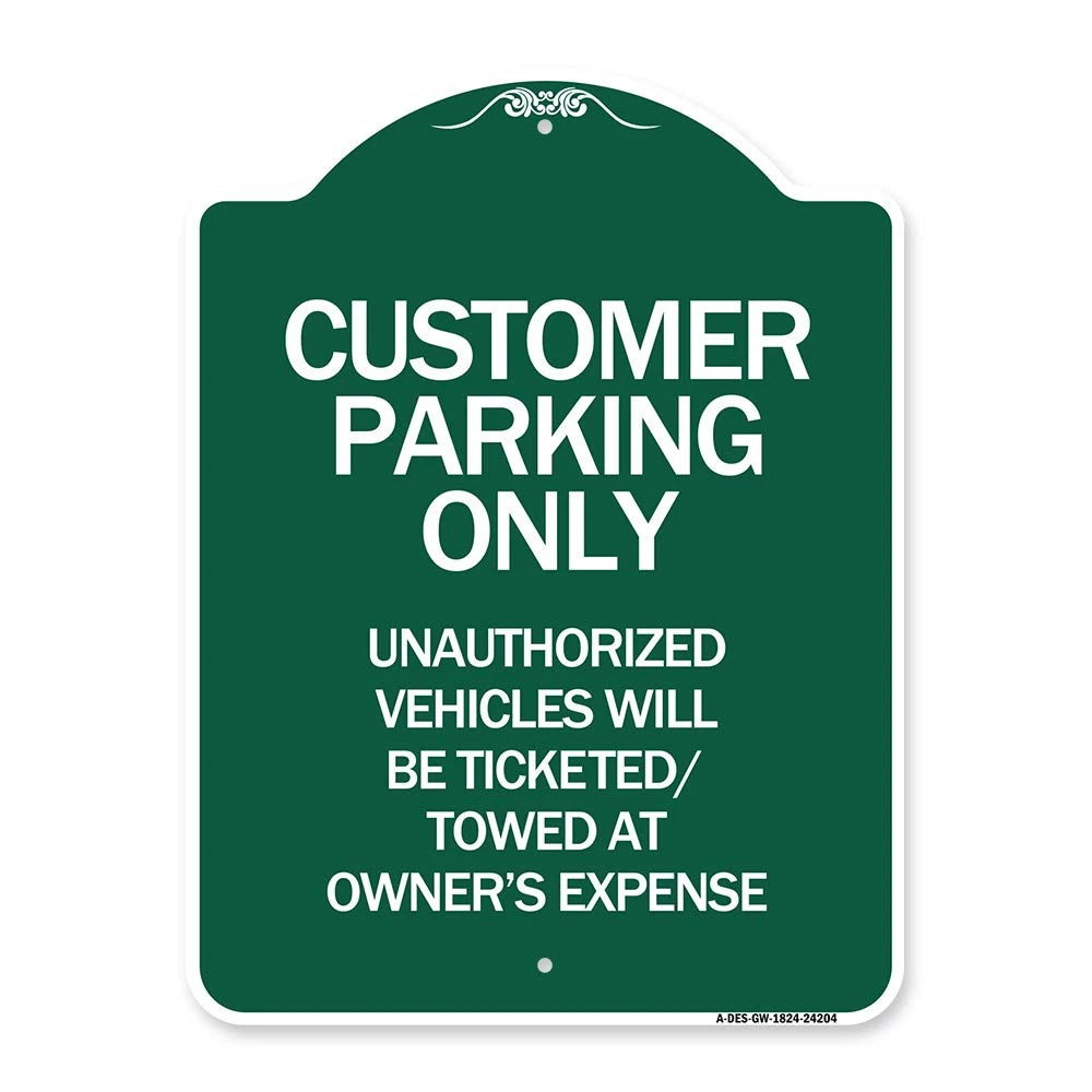 Introducing 's Designer Series Heavy-Gauge Aluminum SignsThis is a 18" x 24" heavy gauge aluminum sign designed for long lasting outdoor use. The sign is manufactured with radius corners and has precut mounting holes for easy installation.Colorful and Durable! Perfect for HOA and Golf Courses!All our signs are in stock are ready to ship immediately. Proudly Manufactured in the U.S.A. by . Our aluminum products are made from commercial corrosive free aluminum specifically for outdoor usage for years of maintenance free life in the harshest environments. Our signs will last as long as your business!EASY TO INSTALLThese signs have pre-punched mounting holes for easy installation. Signs mount to U-channel posts, square or round galvanized posts, wooden posts, all flat surfaces and chain link fences.PROTECT YOUR BUSINESSSigns help protect your business from legal issues and lawsuits while protecting your staff and customers by providing a safe environmentProduct Details:Size: 18" x 24" Green & White Heavy-Gauge Aluminum Architectural SignSigns have rounded/burr-free corners for safe handling and use which provide a professional and architectural appealSigns help protect your business from legal issues and lawsuits while protecting your staff and customers by providing a safe environmentEXTREMELY DURABLE: SigmMission Aluminum products are made from commercial corrosive free aluminum EXTREMELY DURABLE: aluminum products are made from commercial corrosive free aluminum specifically for outdoor usage for years of maintenance free life in the harshest environments. Our signs will last as long as your business! EASY TO INSTALL: signs have pre-punched mounting holes for easy installation. Signs mount to U-channel posts, square or round galvanized posts, wooden posts, all flat surfaces and chain link fences. ROUNDED CORNERS: Signs have rounded/burr-free corners for safe handling and use which provide a professional and architectural appeal. PROTECT YOUR BUSINESS: Signs help protect your business from legal issues and lawsuits while protecting your staff and customers by providing a safe environment PROUDLY MADE IN THE U. S. A. : Buy with the confidence and pride that only comes from purchasing a product produced in our state-of-the-art facility in West Palm Beach, Florida